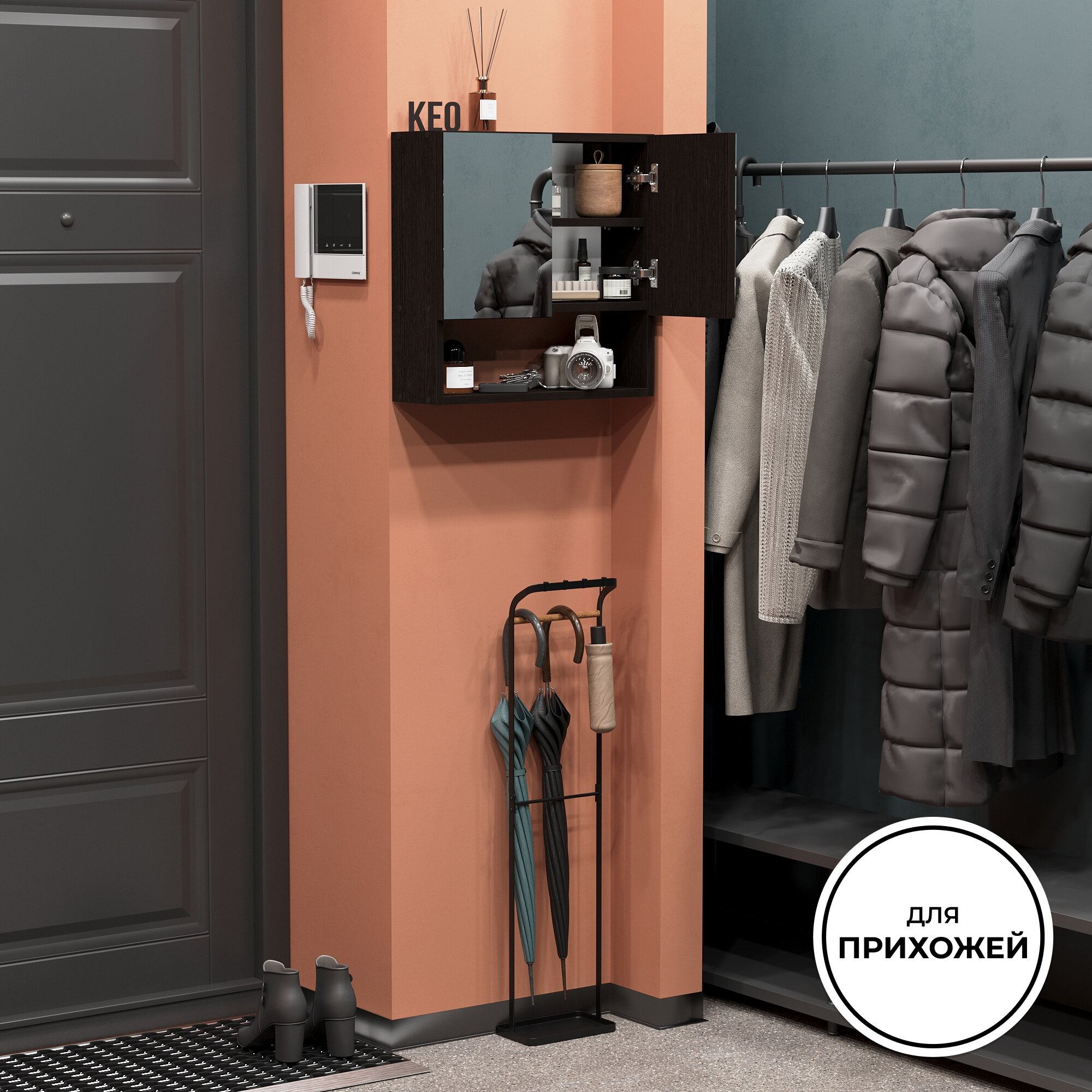 Купить Шкаф с зеркалом для ванной навесной или прихожей подвесной Кео ШКН-150 венге 500х173х500