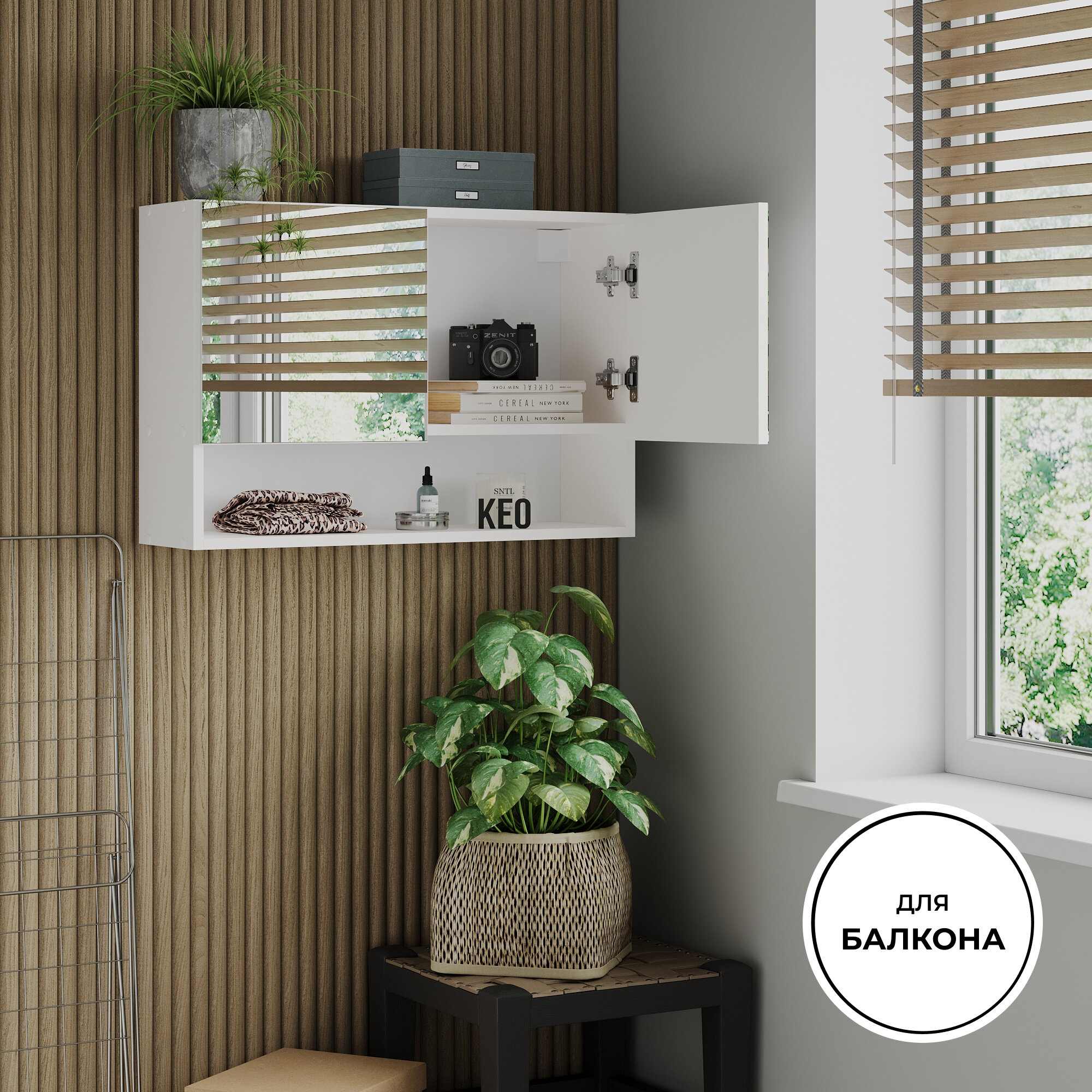 Шкаф навесной для ванной прихожей балкона Кео ШКН-170 молочный белый 740х173х300 мм