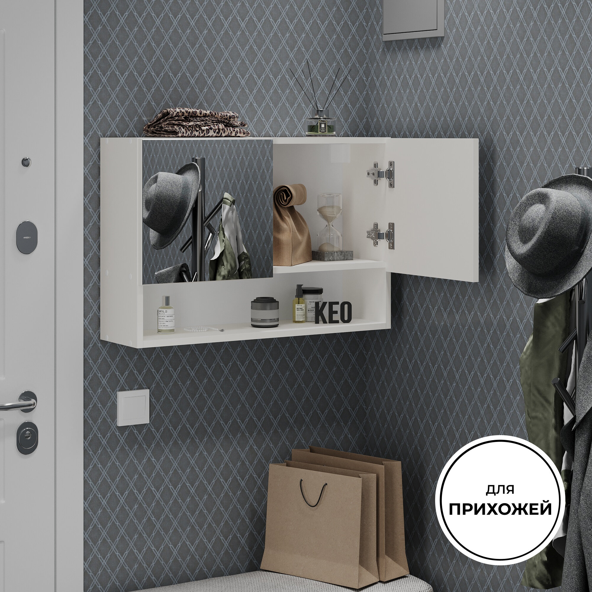 Шкаф с зеркалом навесной для ванной и прихожей подвесной "Кео ШКН 150" белый 500х173х500