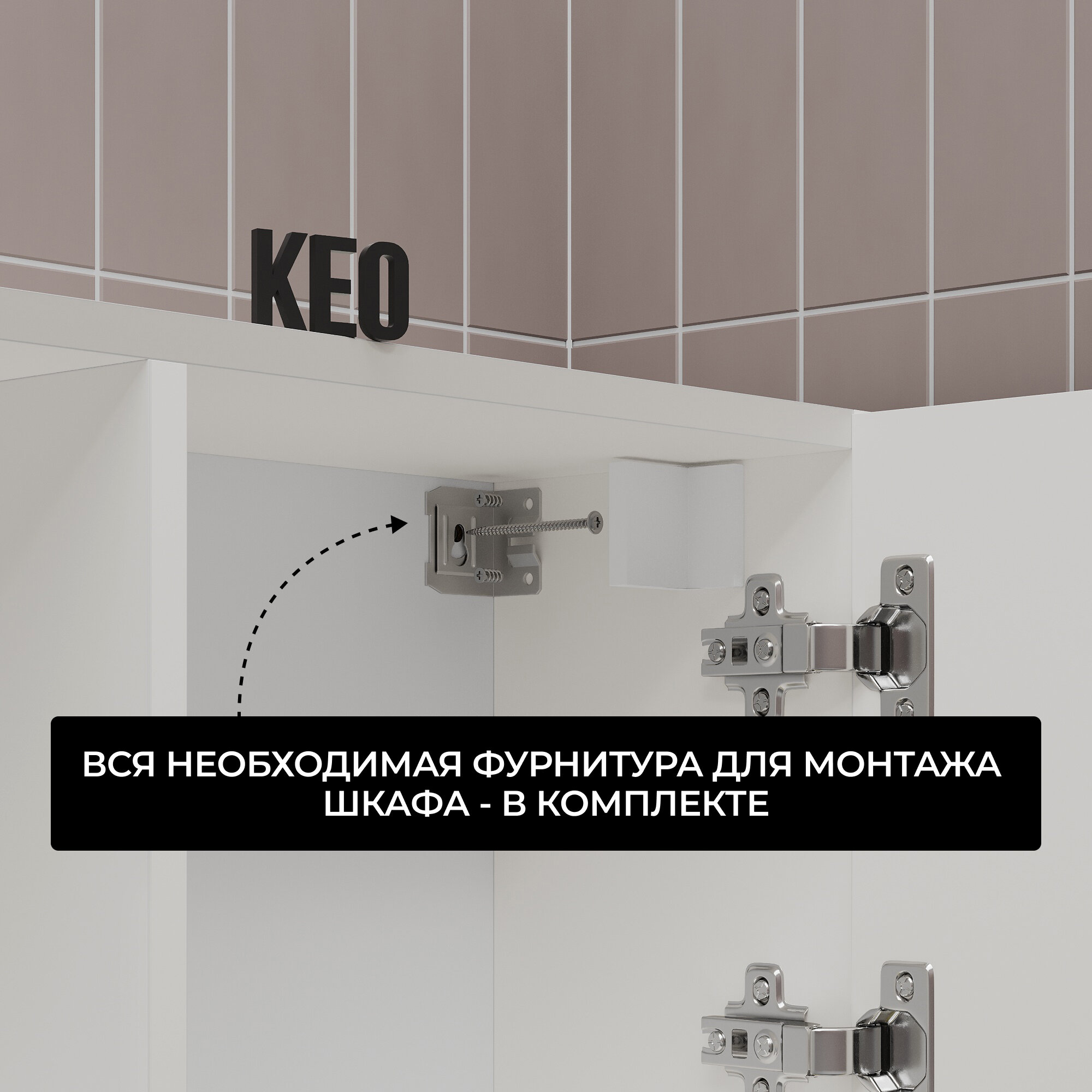 Купить Шкаф навесной распашной Кео ШКН-240 белый с зеркалами полками для вещей в ванную прихожую 500х225х740 мм