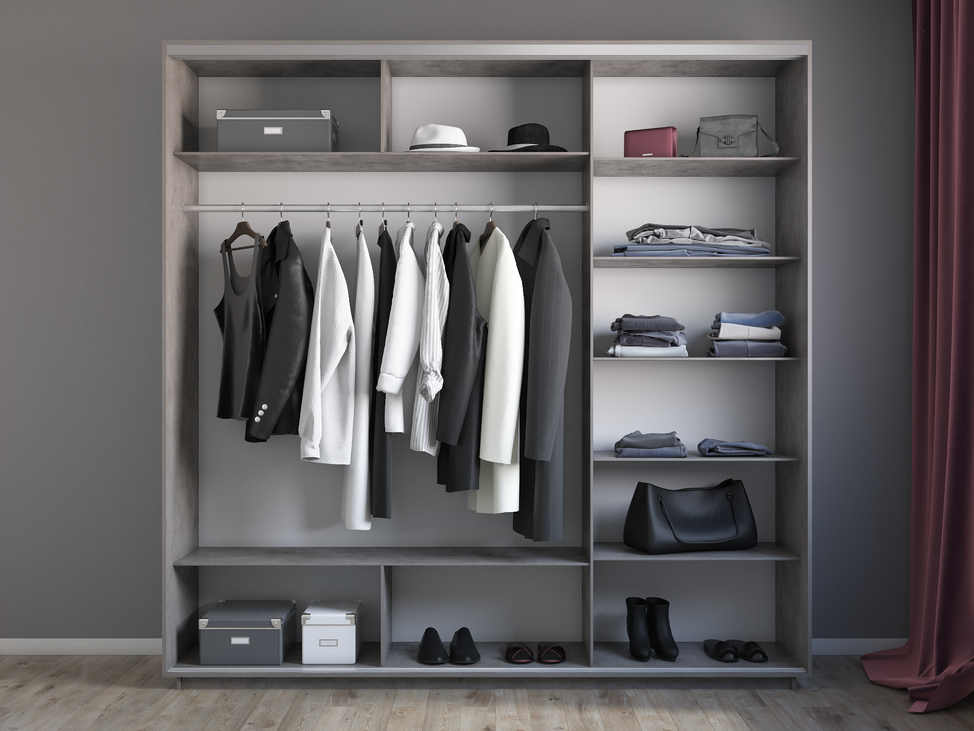 Купить Шкаф купе для одежды, цвет Бетон, 220Х240Х60 (ВхШхГ), 3 зеркала