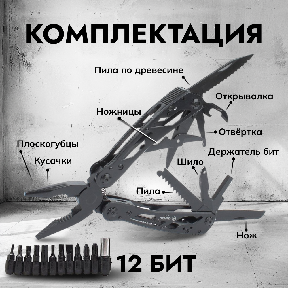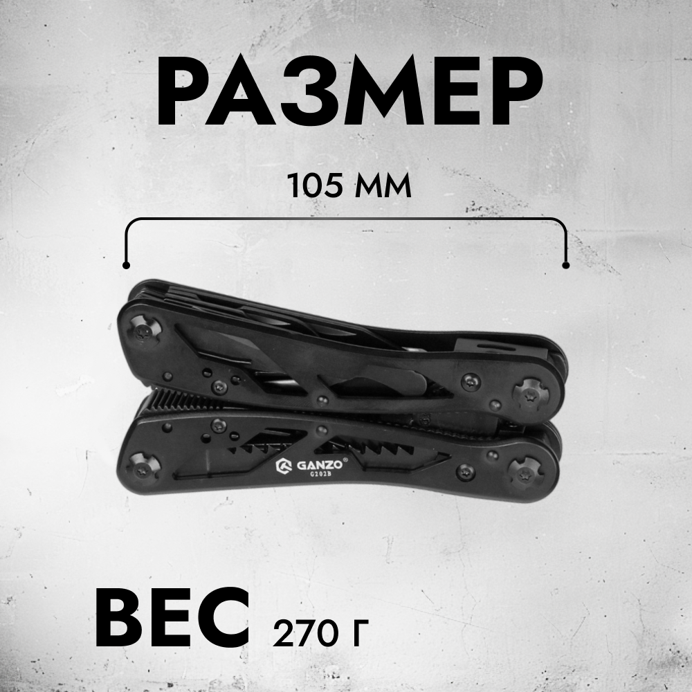 Набор аксессуаров Мультитул пассатижи GANZO G202 черный