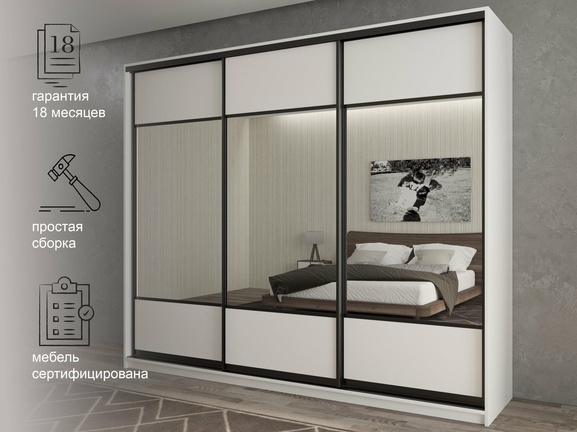 | Особенности | с зеркалом, штанга для вешалок |