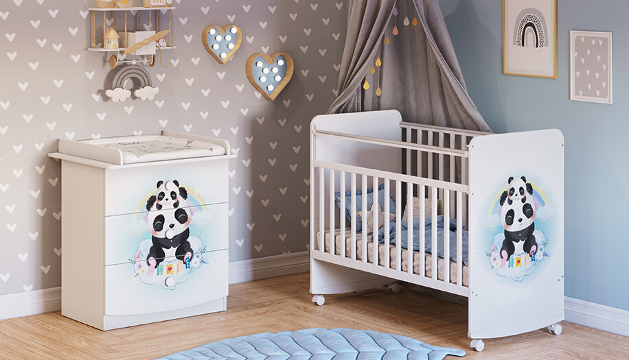 Купить 1380 с пеленальной рамой Милые панды/Белый