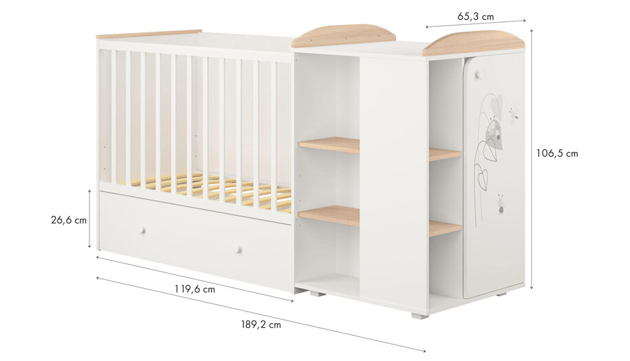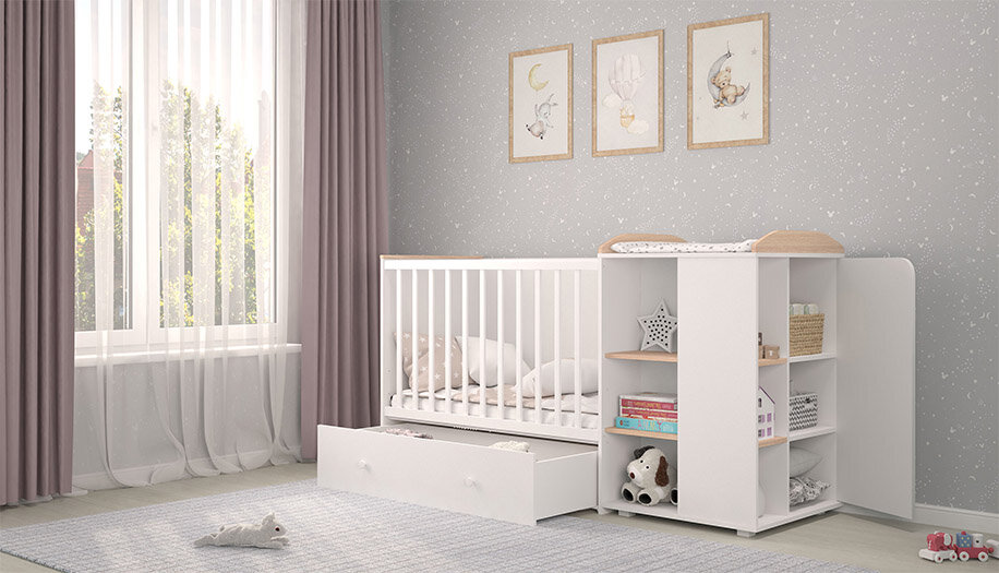 Кроватка детская Polini kids Porto 1300, белый-дуб каменный