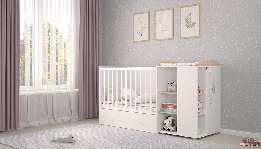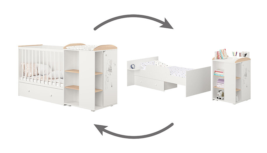 ВДК Детская кровать-трансформер «Слоник» с поперечным маятником, цвет белый