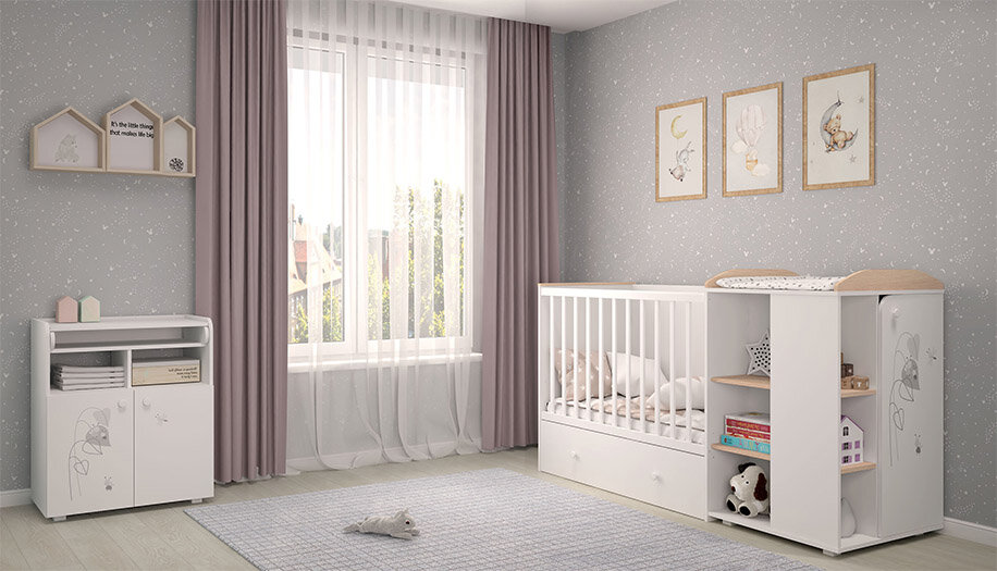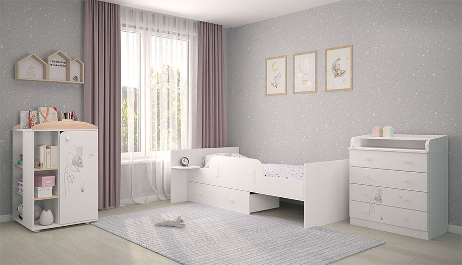 Кровать детская Polini kids French 900, Amis, с комодом, белый-дуб пастельный интересное: