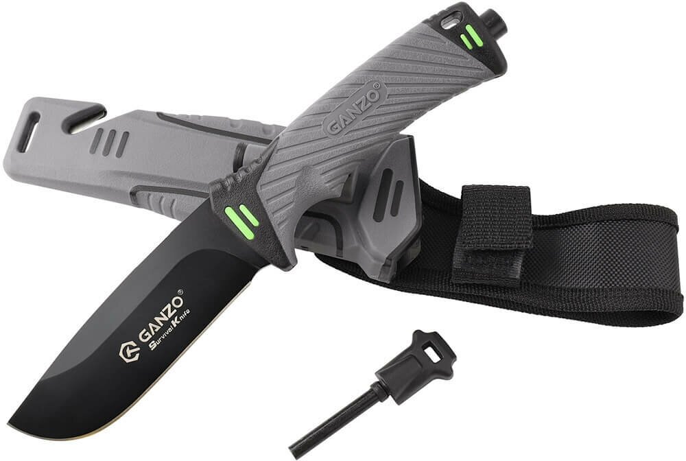 Нож выживания с огнивом Ganzo G8012, чёрный