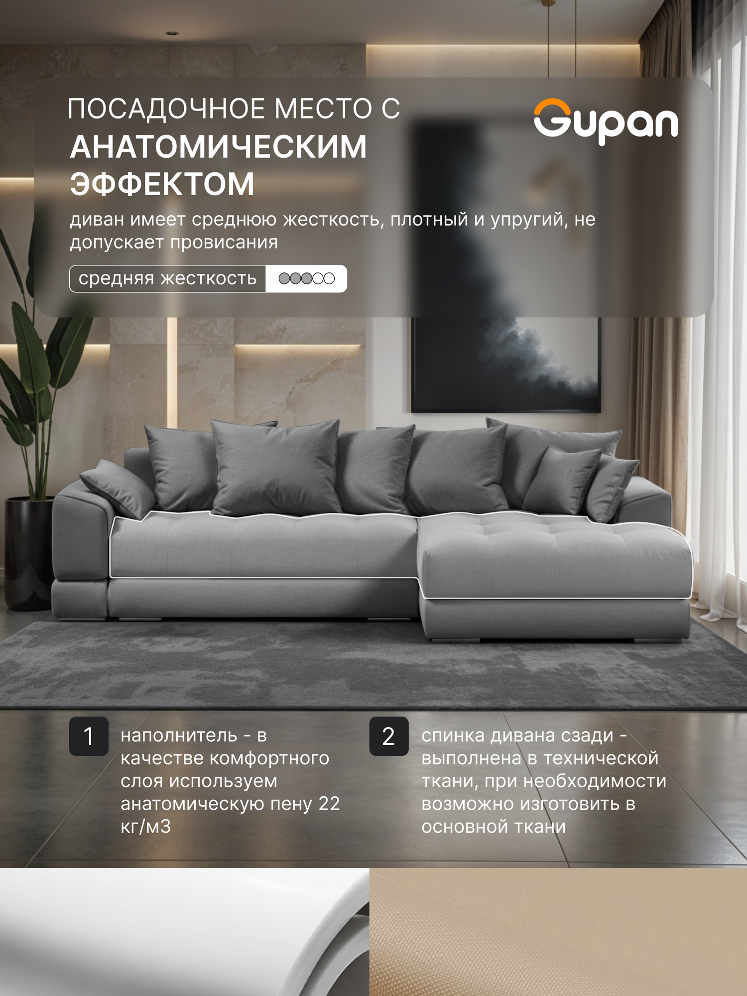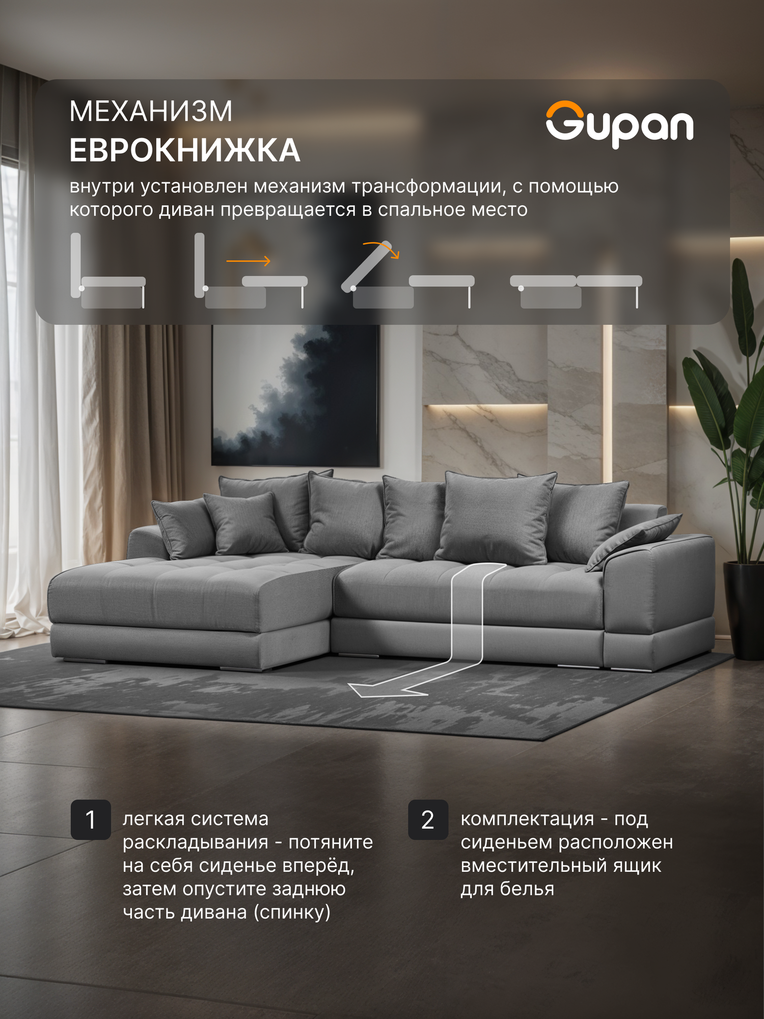 СохранитьУгловой диван-кровать Gupan Nordkisa, механизм Еврокнижка, 285х190х87 см, наполнитель ППУ, ящик для белья, цвет Amigo Grey интересное: