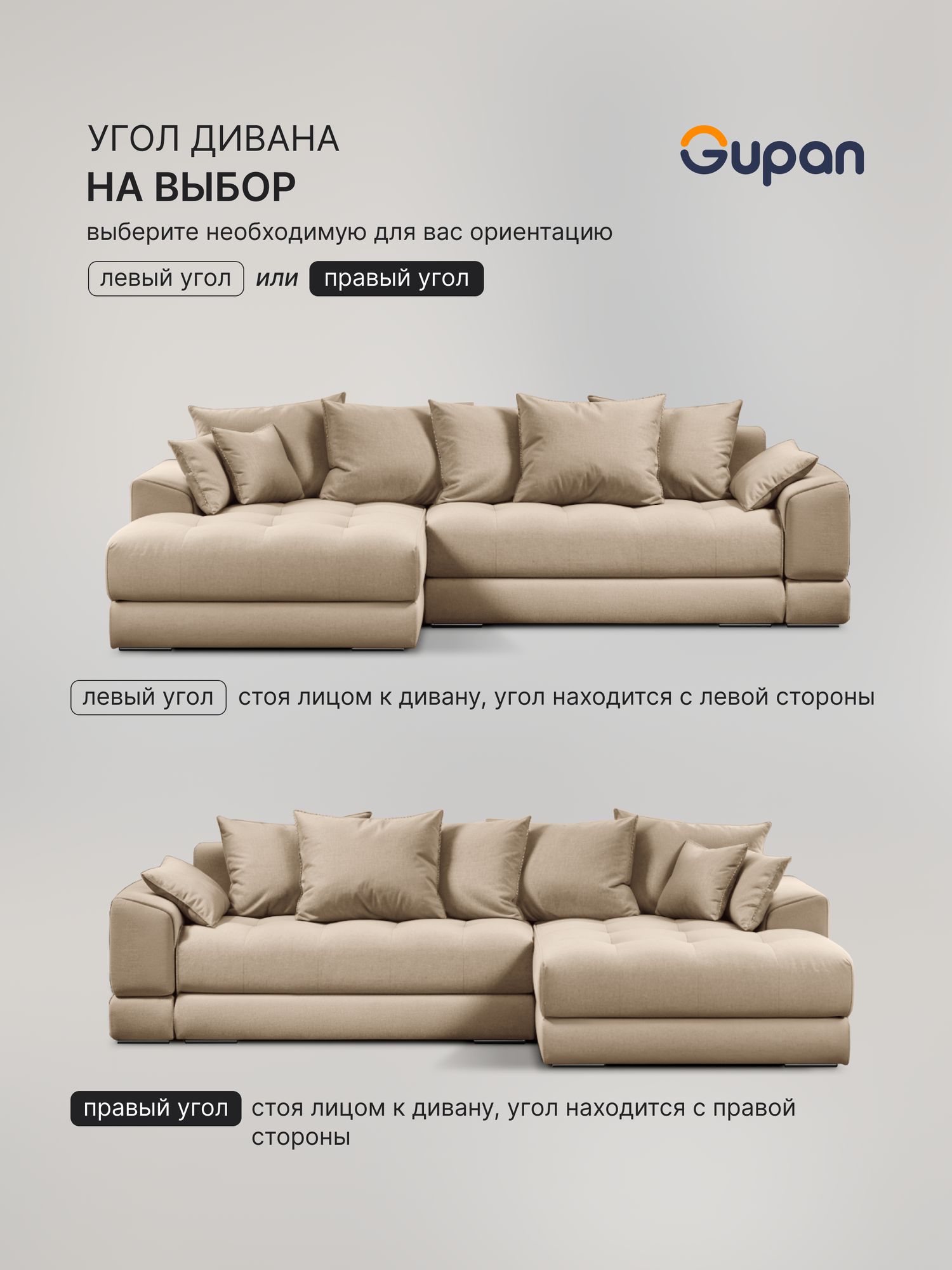 Угловой диван-кровать Gupan Nordkisa, механизм Еврокнижка, 285х190х87 см, наполнитель ППУ, ящик для белья, цвет Amigo Beige