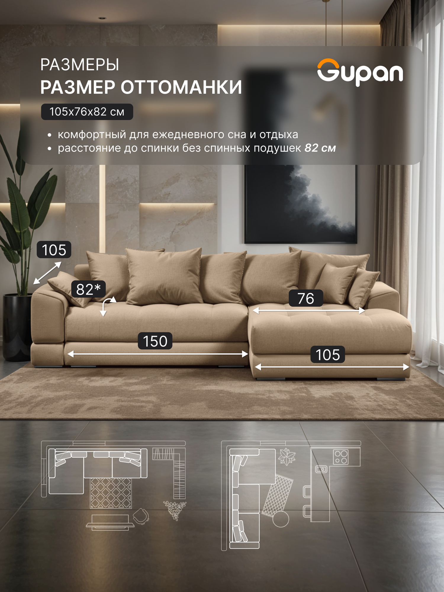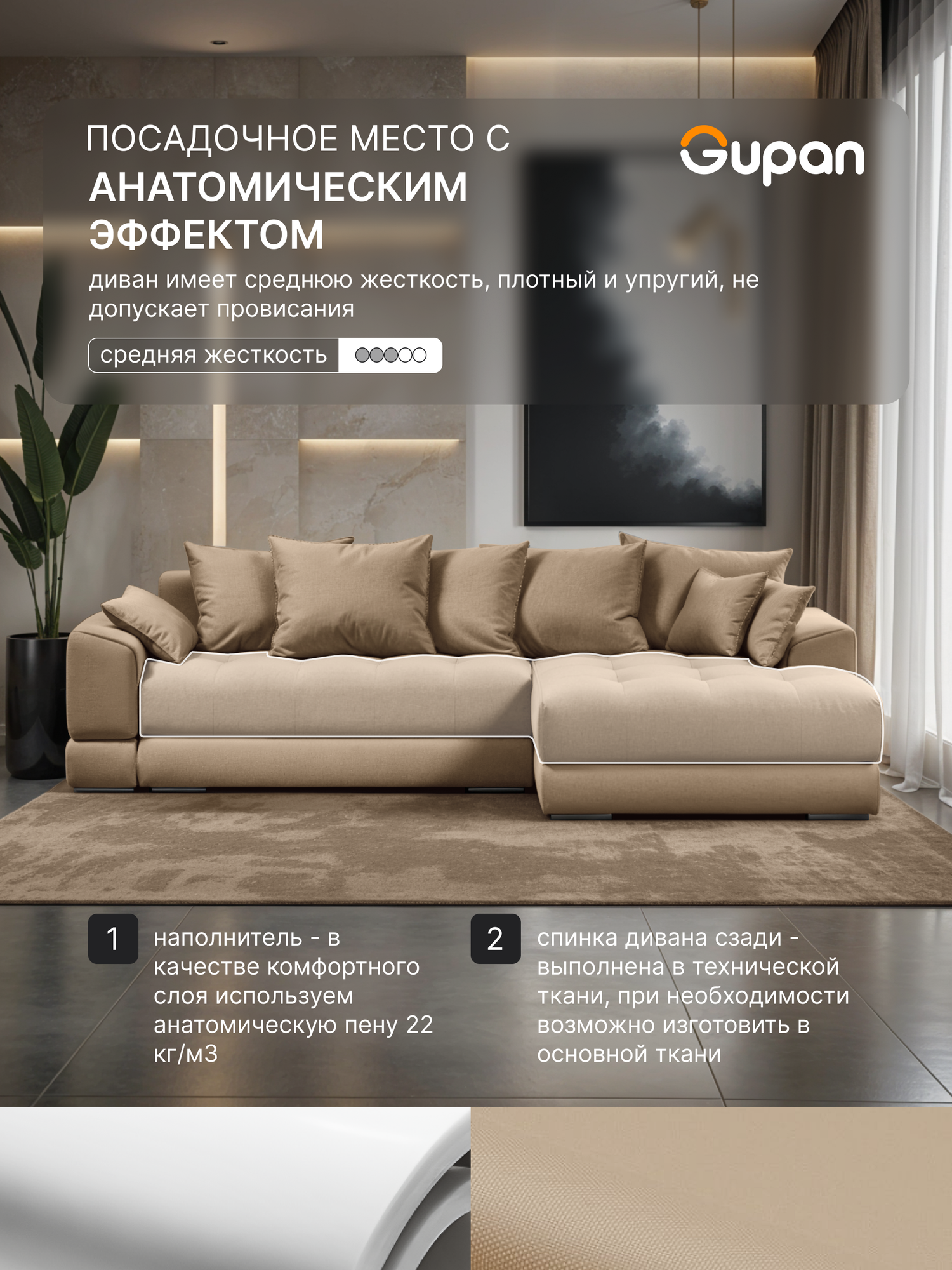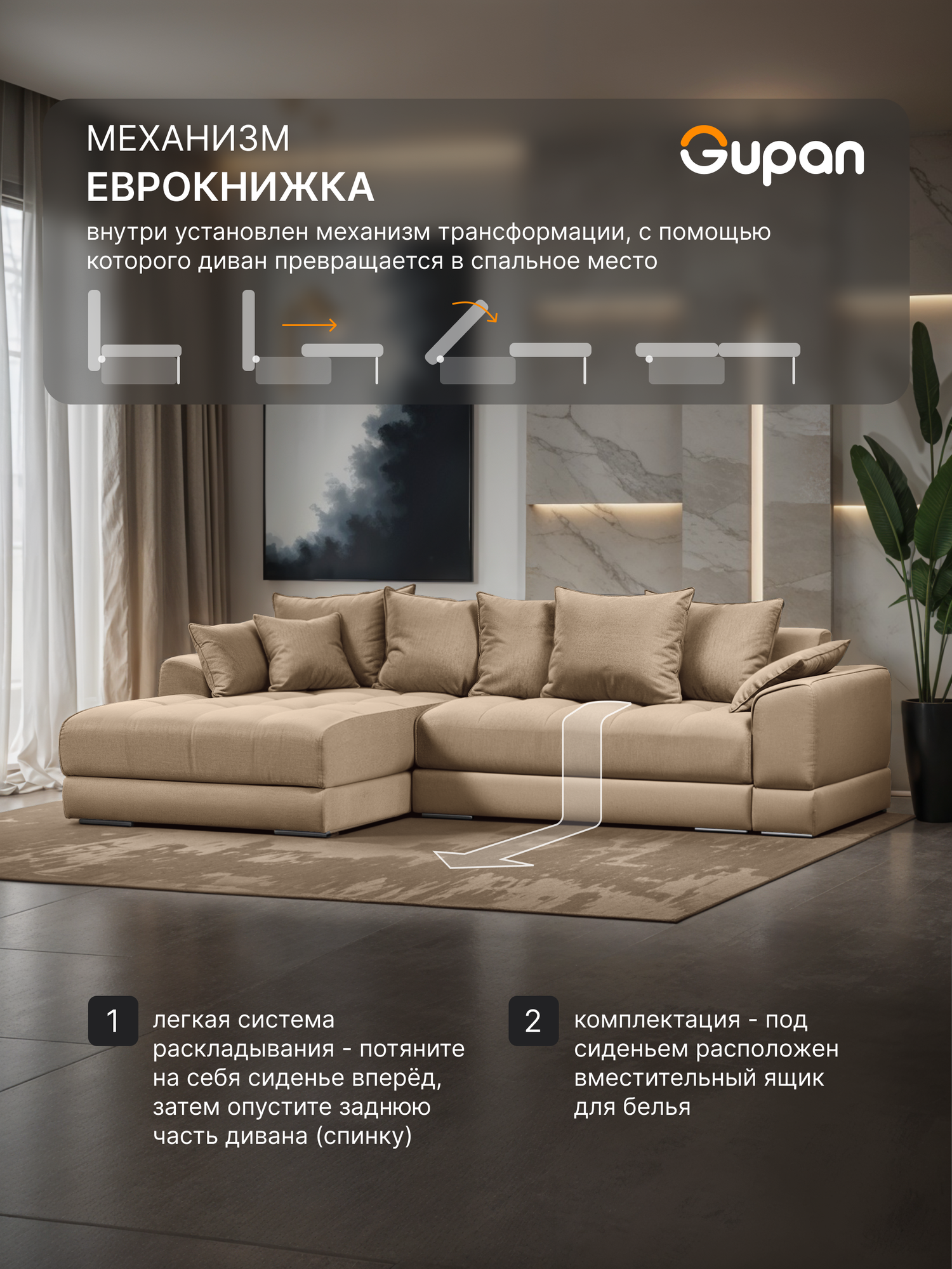 СохранитьУгловой диван-кровать Gupan Nordkisa, механизм Еврокнижка, 285х190х87 см, наполнитель ППУ, ящик для белья, цвет Amigo Beige интересное: