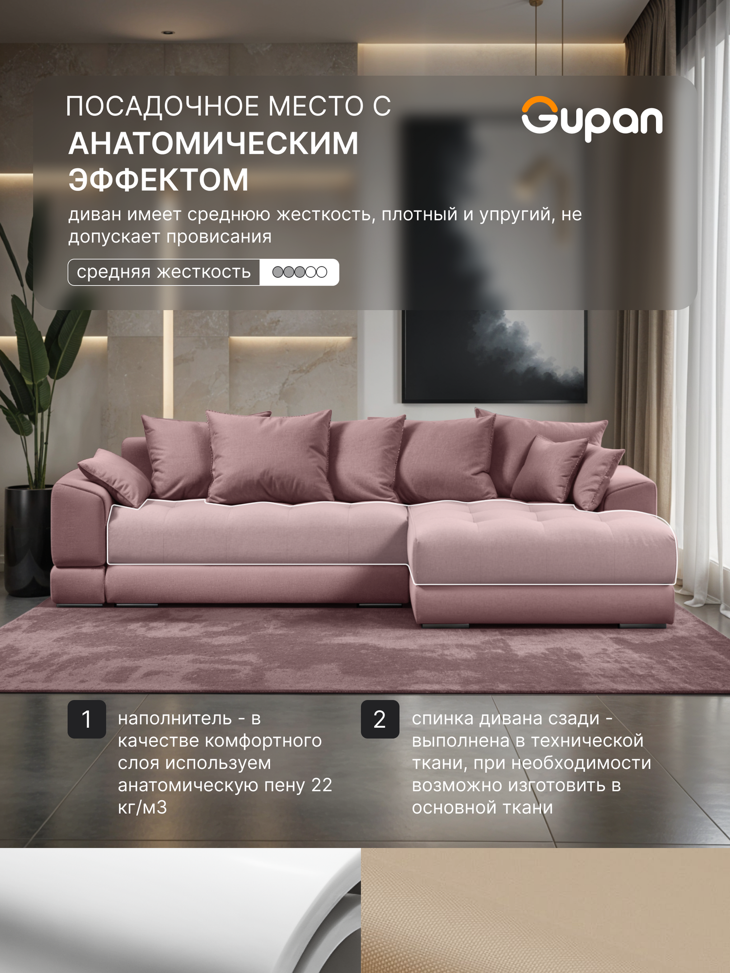 Угловой диван-кровать Gupan Nordkisa, механизм Еврокнижка, 285х190х87 см, наполнитель ППУ, ящик для белья, цвет Amigo Dimrose