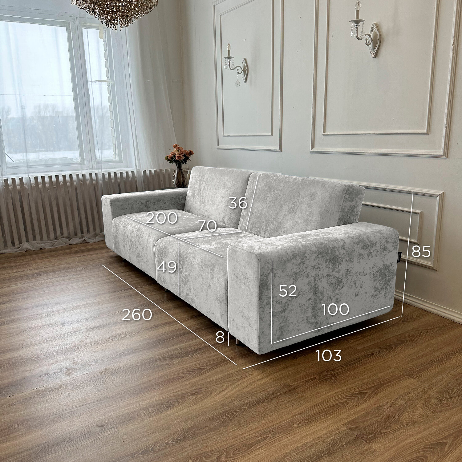 Купить Диван-кровать Redsofa Аурис 260 см серебристый Ocean. Раскладной прямой диван со съемными чехлами, для дома и офиса.