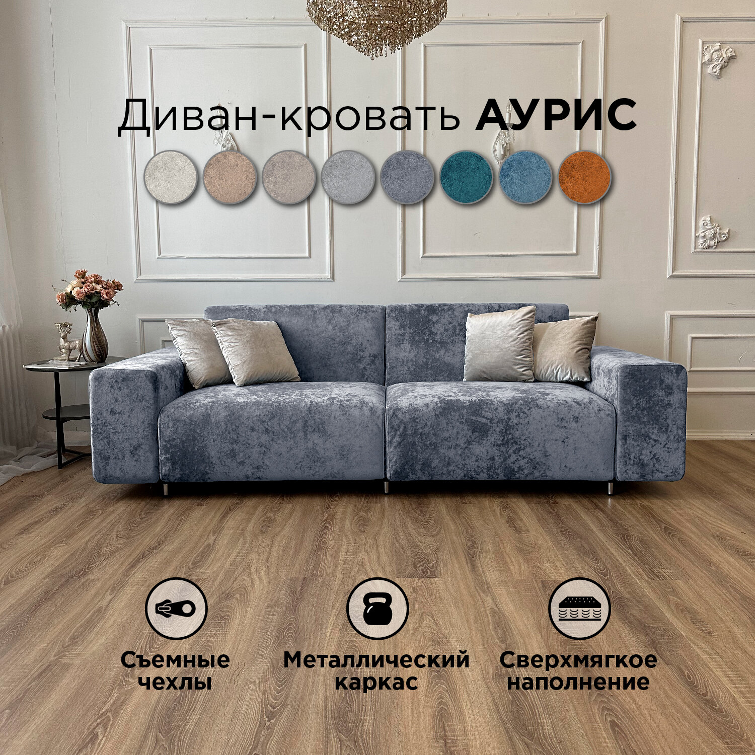 СохранитьДиван-кровать Redsofa Аурис 260 см маренго Ocean. Раскладной прямой диван со съемными чехлами, для дома и офиса. интересное: