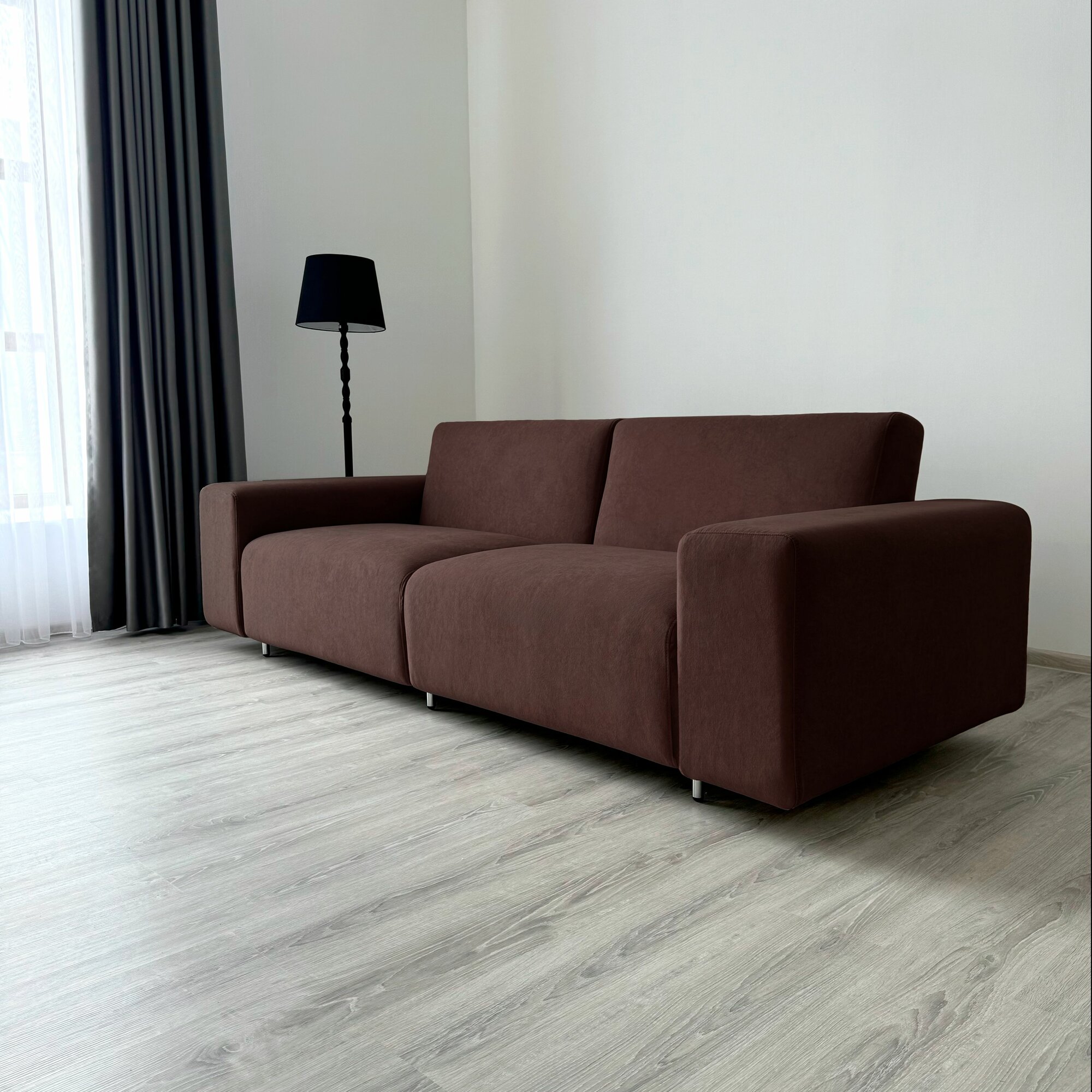 Диван-кровать Redsofa Аурис 260 см темно-коричневый Teddi. Раскладной прямой диван со съемными чехлами, для дома и офиса (Мебельный гарнитур бытового назначения)