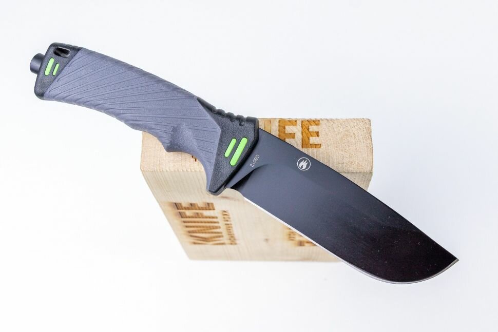 Острие с углом 75 градусов также обеспечивает его высокую прочность. Пырять таким острием, конечно, не с руки (и хорошо, иначе это было бы холодное оружие), зато подкопать или стамеской подработать удобнее, чем остроконечным. Тем более, что стеклобой удачно сделан - он не конический, а цилиндрический, что позволяет использовать его и как молоточек, и по нему ударять при использовании ножа в роли долота. Ручка удобная, ухватистая (лично для меня). В комплекте огниво (хотя и спорное удобство, но лучше пусть будет). |