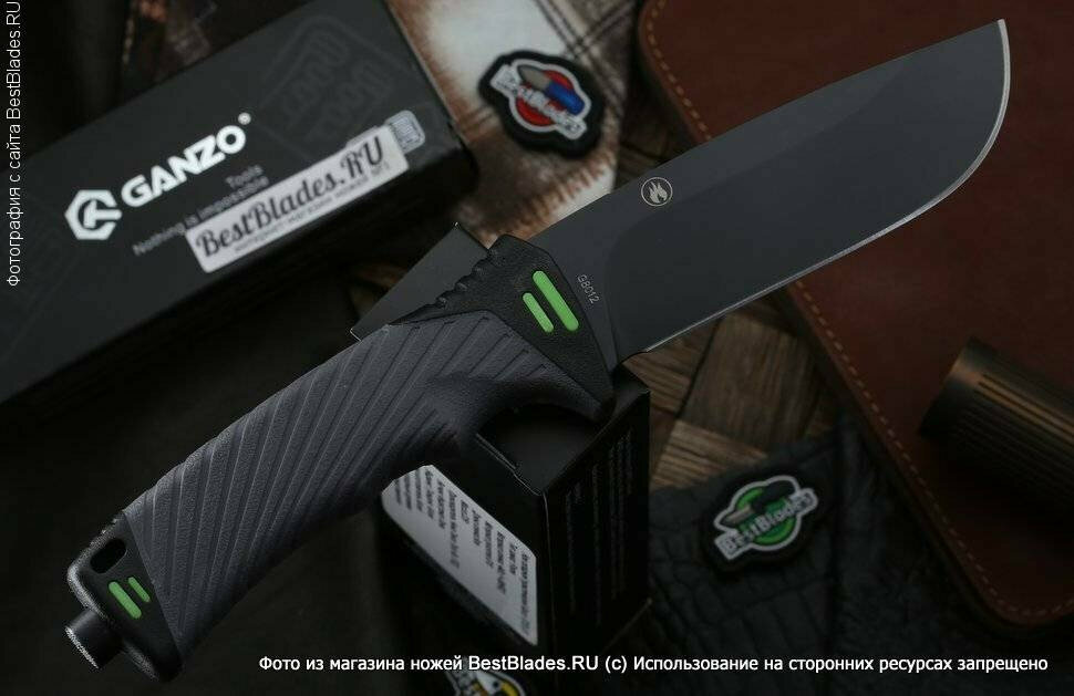 Нож выживания с огнивом Ganzo G8012, чёрный