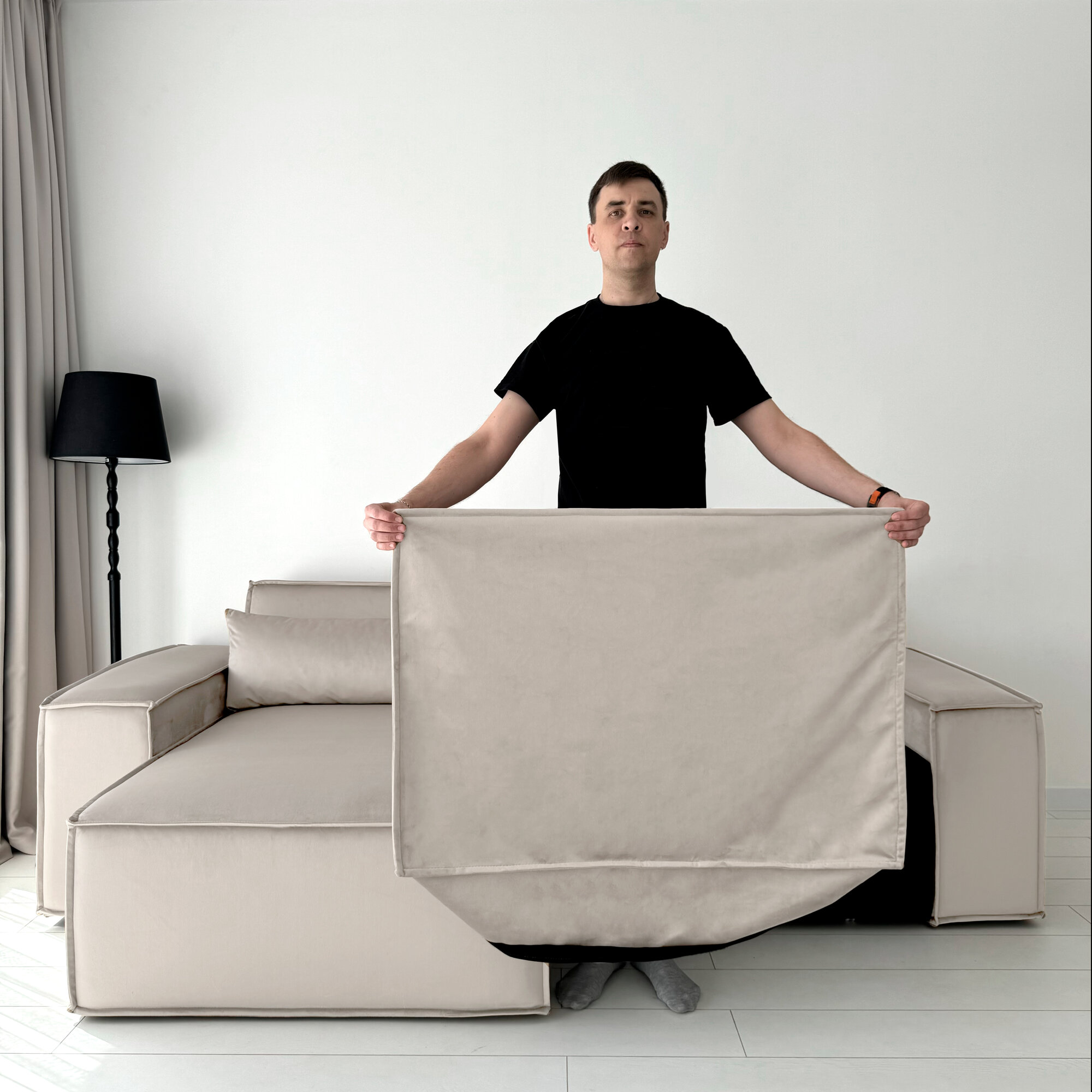 Диван-кровать Redsofa Пикассо 260 см бежевый Teddi. Раскладной угловой диван со съемными чехлами, для дома и офиса.