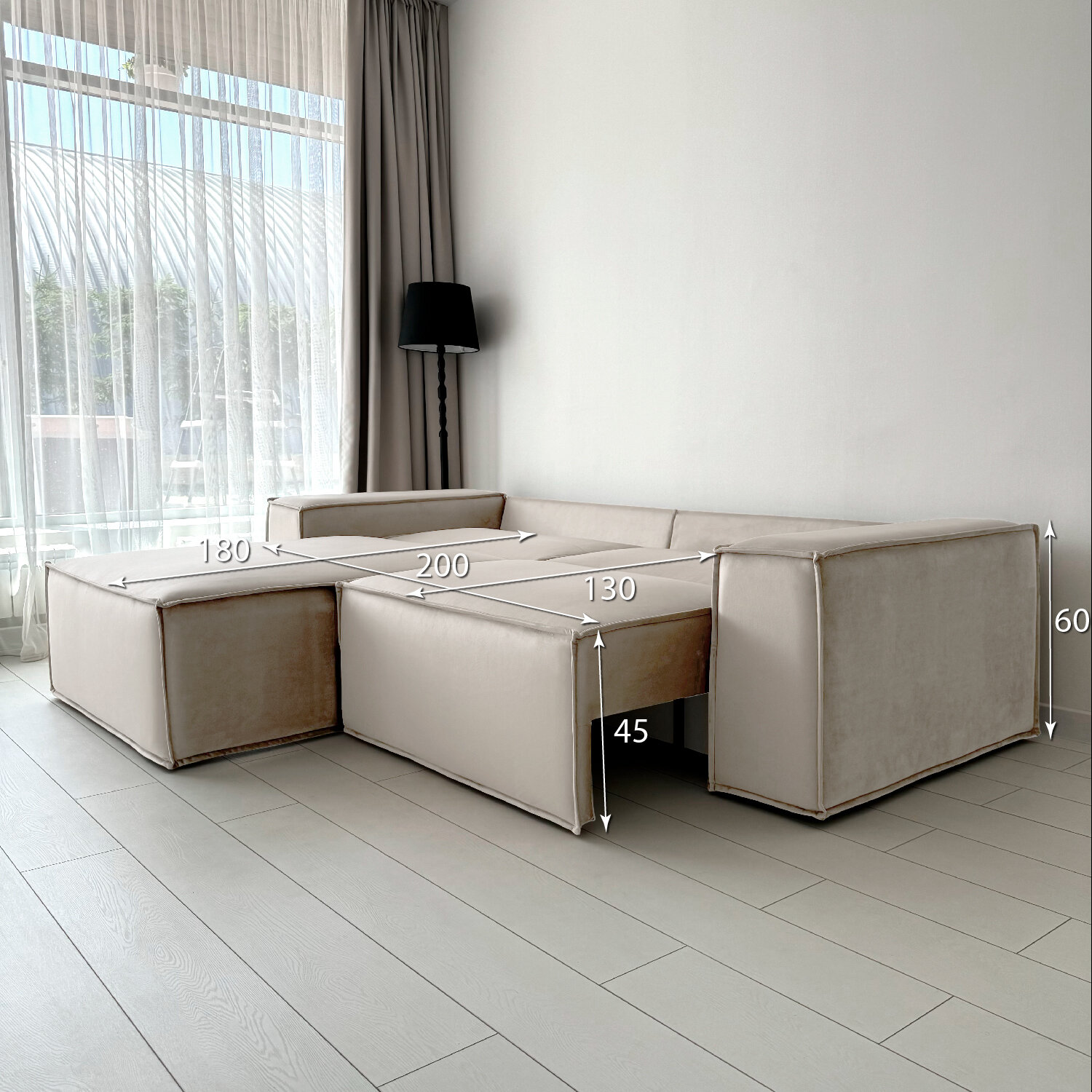 Диван-кровать Redsofa Пикассо 260 см светло-бежевый Ocean. Раскладной угловой диван со съемными чехлами, для дома и офиса.