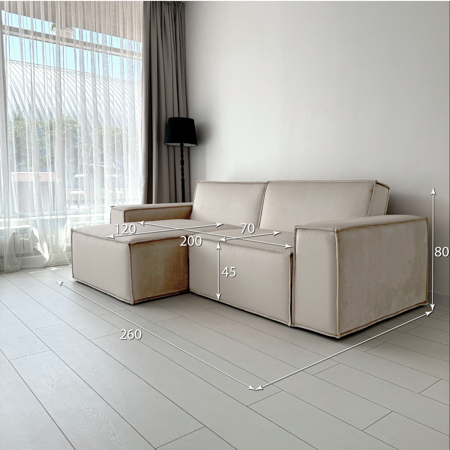 Диван-кровать Redsofa Пикассо 260 см Букле Латте. Раскладной угловой диван со съемными чехлами, для дома и офиса (Мебельный гарнитур бытового назначения)