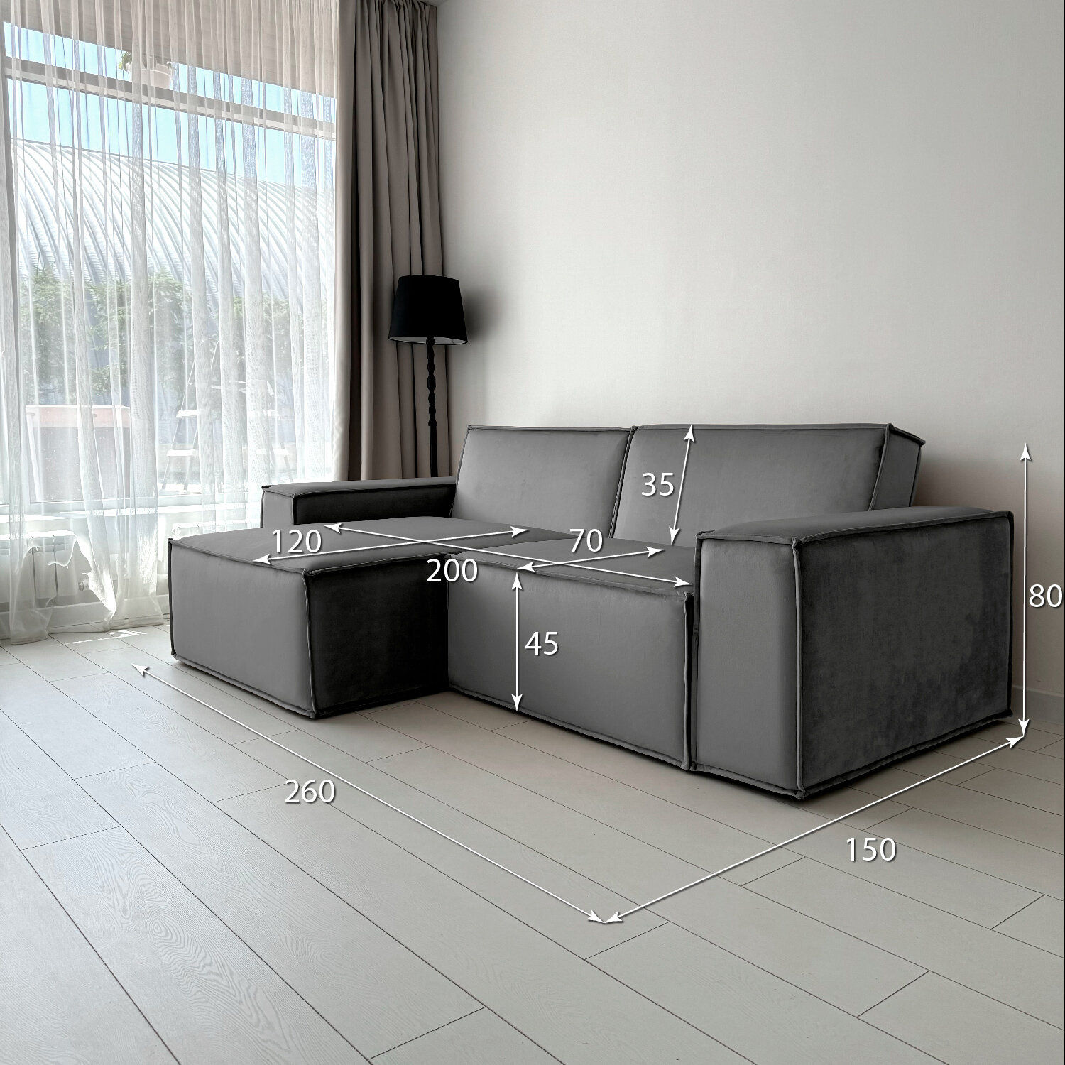 Диван-кровать Redsofa Пикассо 260 см графит Teddi. Раскладной угловой диван со съемными чехлами, для дома и офиса.