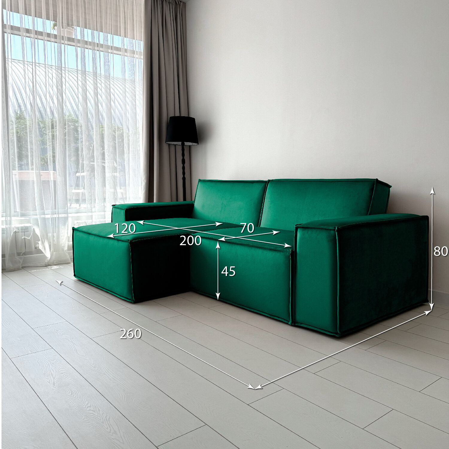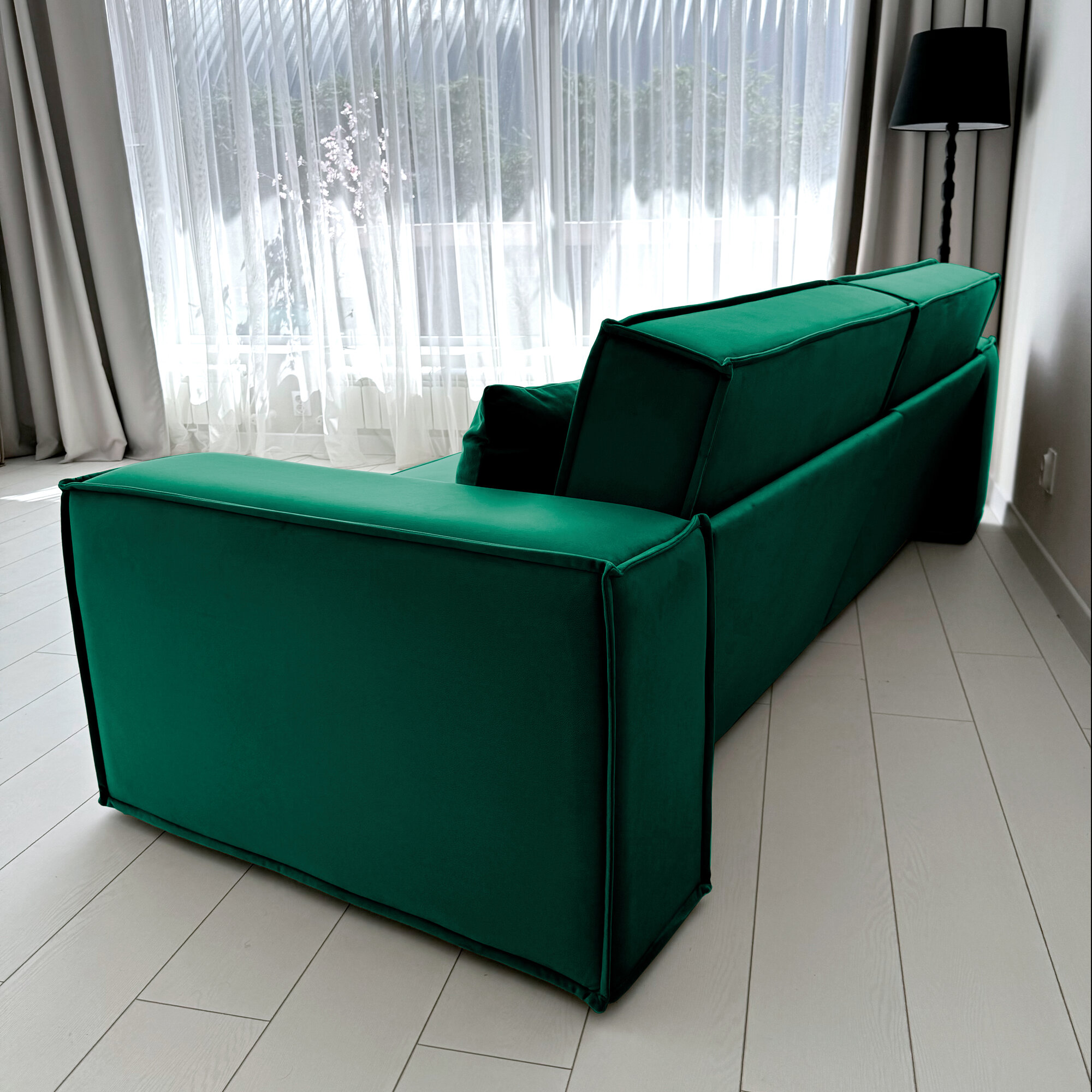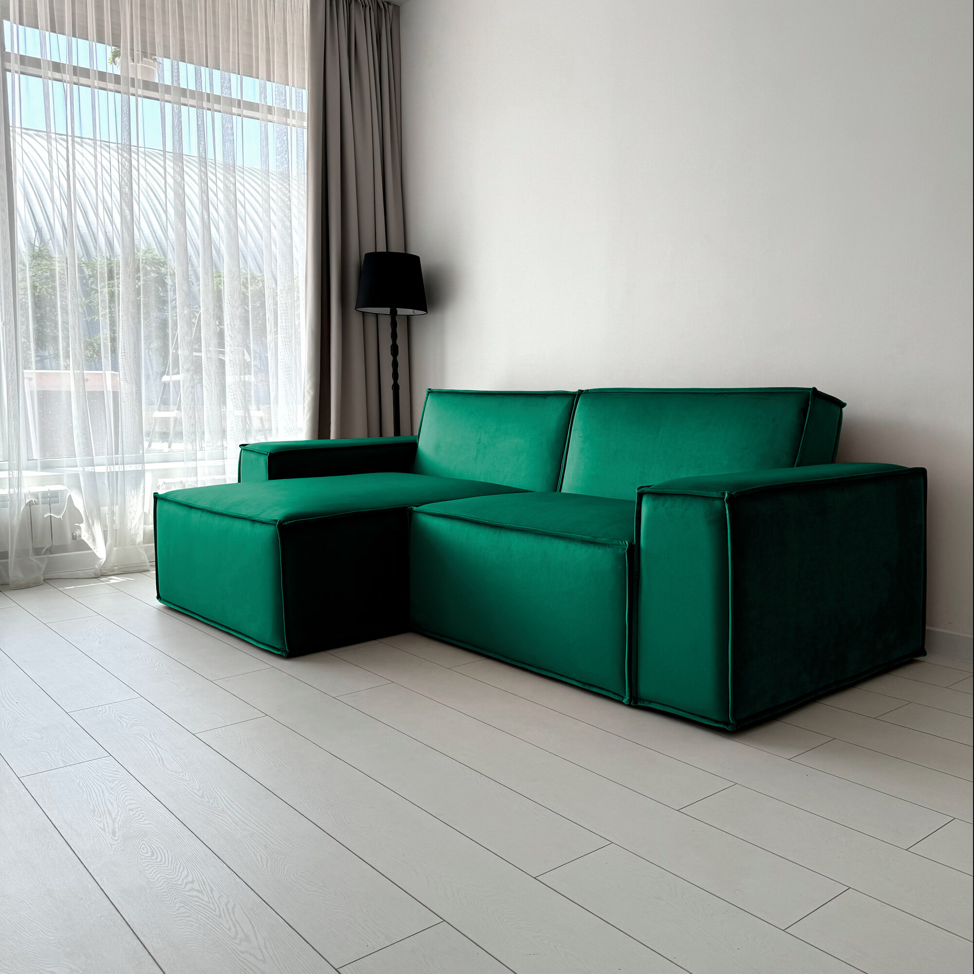 Купить Диван-кровать Redsofa Пикассо 260 см изумрудный антивандальный. Раскладной угловой диван со съемными чехлами, для дома и офиса.