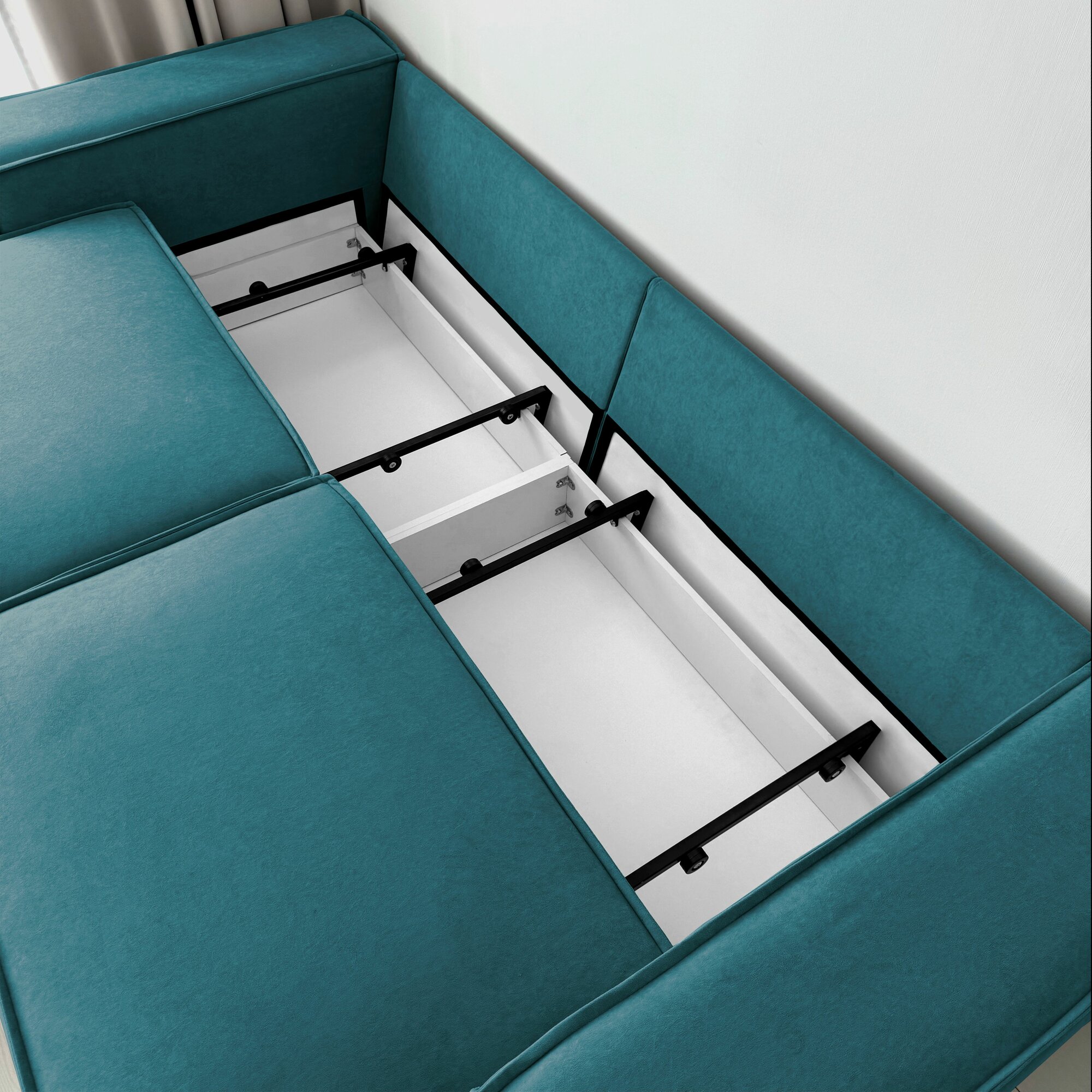 Диван-кровать Redsofa Пикассо 260 см бирюзовый Teddi. Раскладной угловой диван со съемными чехлами, для дома и офиса (Мебельный гарнитур бытового назначения)