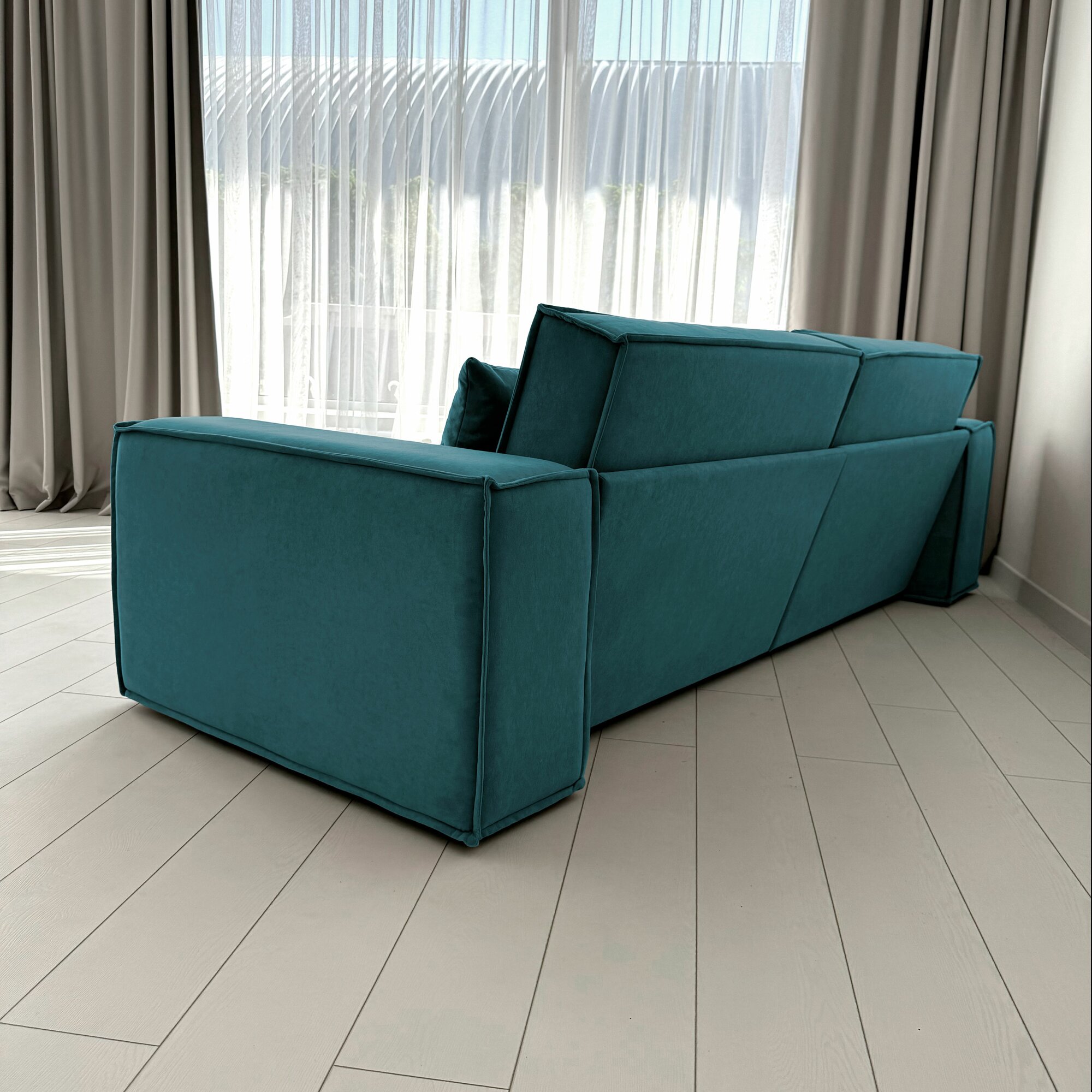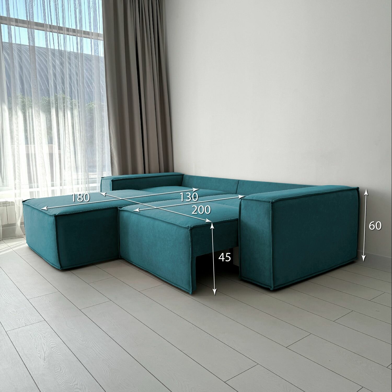 Диван-кровать Redsofa Пикассо 260 см аквамарин Ocean. Раскладной угловой диван со съемными чехлами, для дома и офиса.