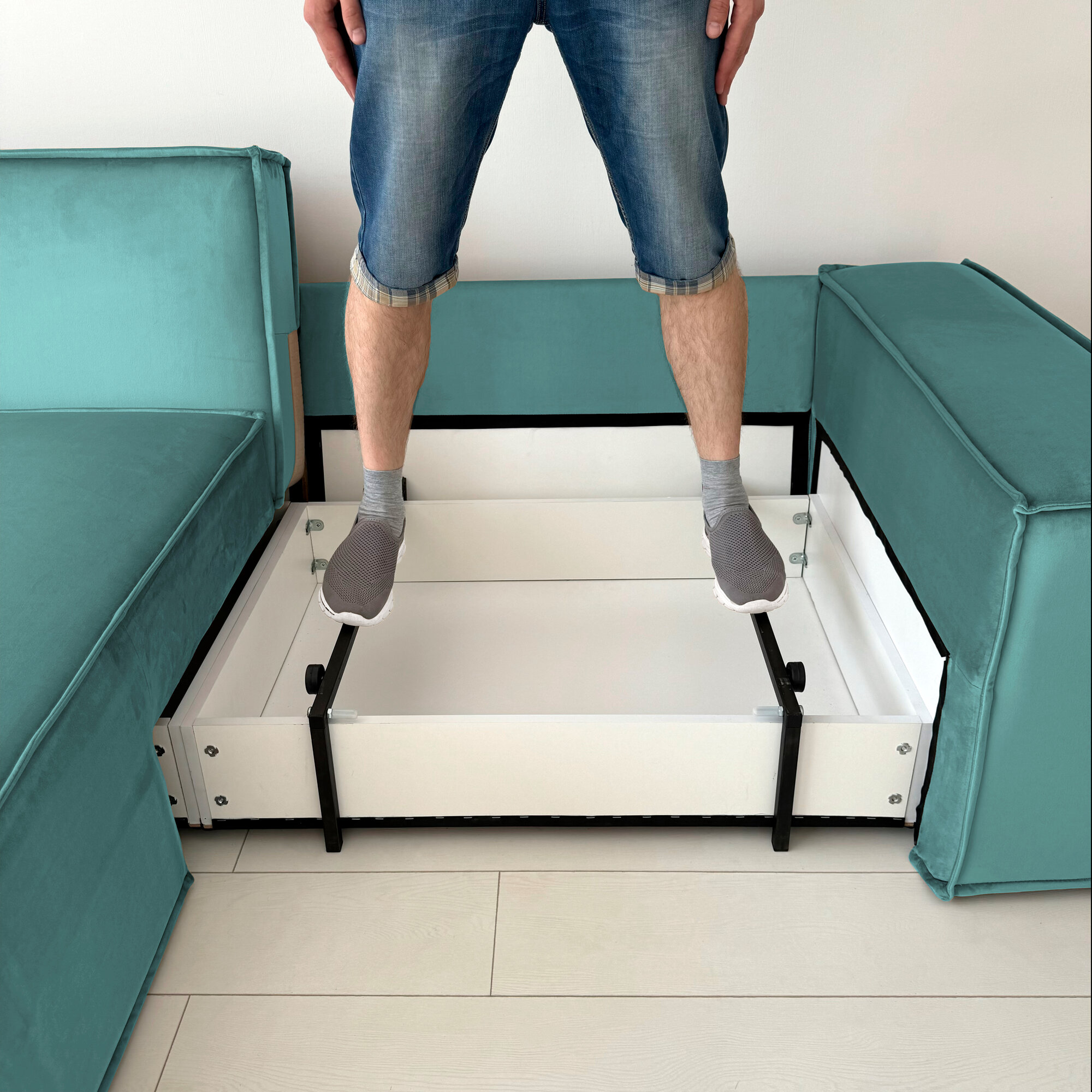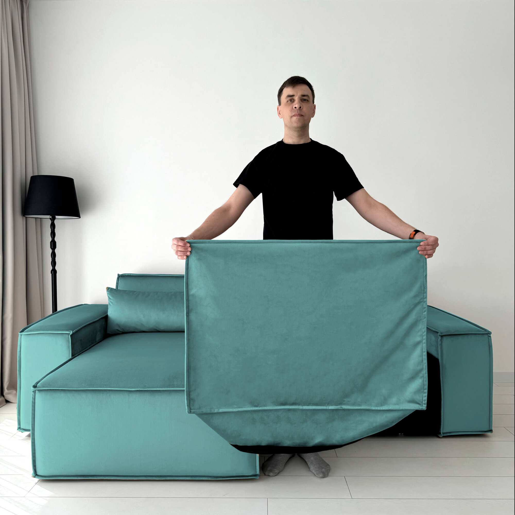 Диван-кровать Redsofa Пикассо 260 см бирюзовый Teddi. Раскладной угловой диван со съемными чехлами, для дома и офиса (Мебельный гарнитур бытового назначения)