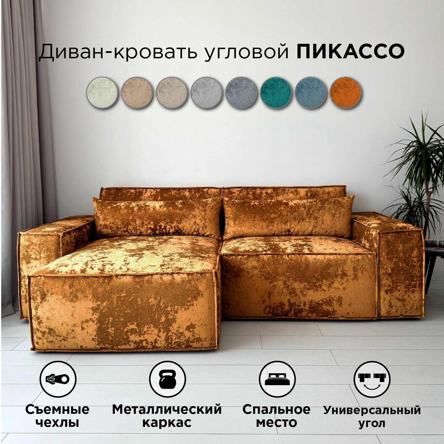СохранитьДиван-кровать Redsofa Пикассо 260 см охра Ocean. Раскладной угловой диван со съемными чехлами, для дома и офиса. интересное: