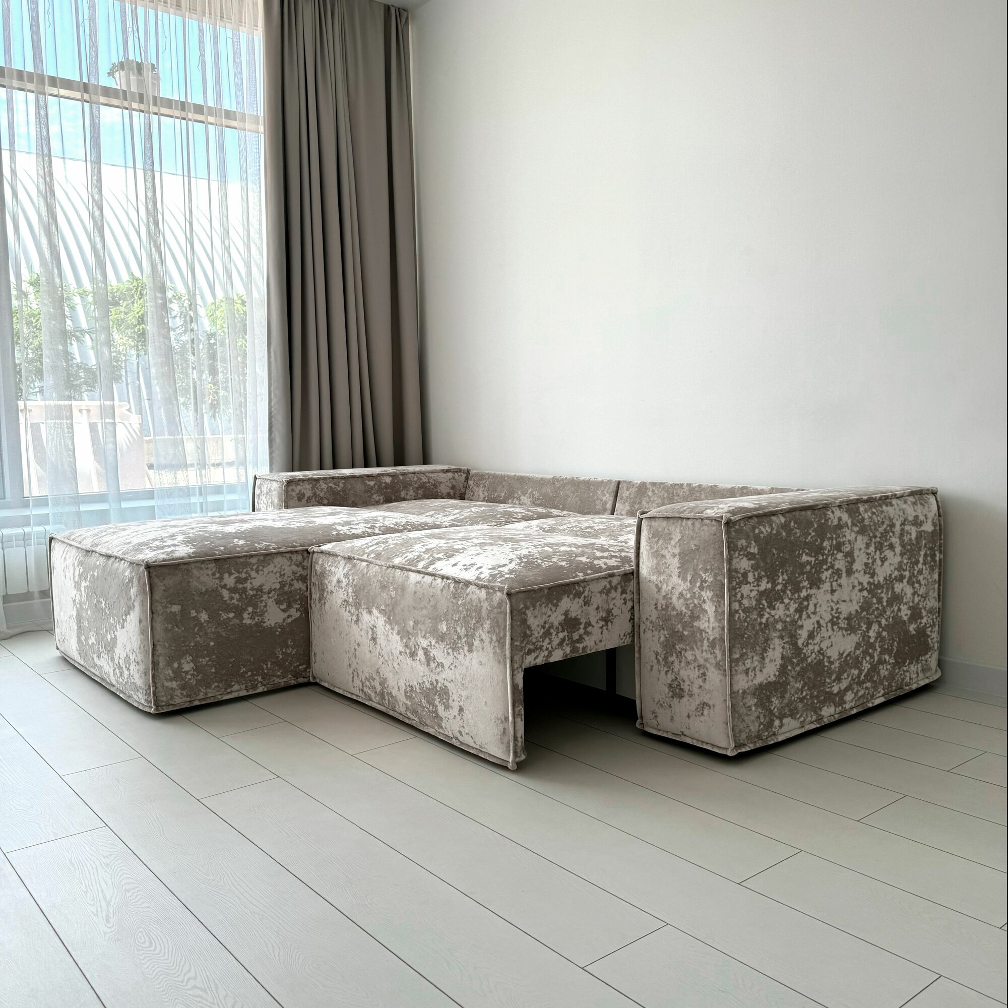 Диван-кровать Redsofa Пикассо 260 см светло-бежевый Ocean. Раскладной угловой диван со съемными чехлами, для дома и офиса.