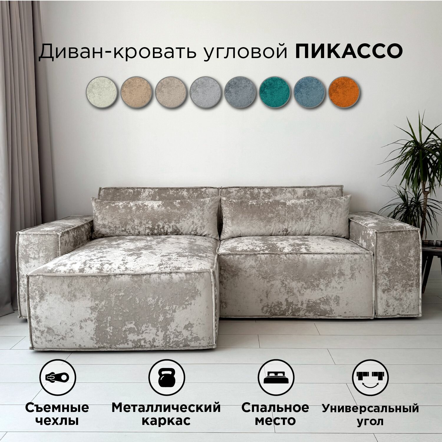 СохранитьДиван-кровать Redsofa Пикассо 260 см серебристый Ocean. Раскладной угловой диван со съемными чехлами, для дома и офиса. интересное: