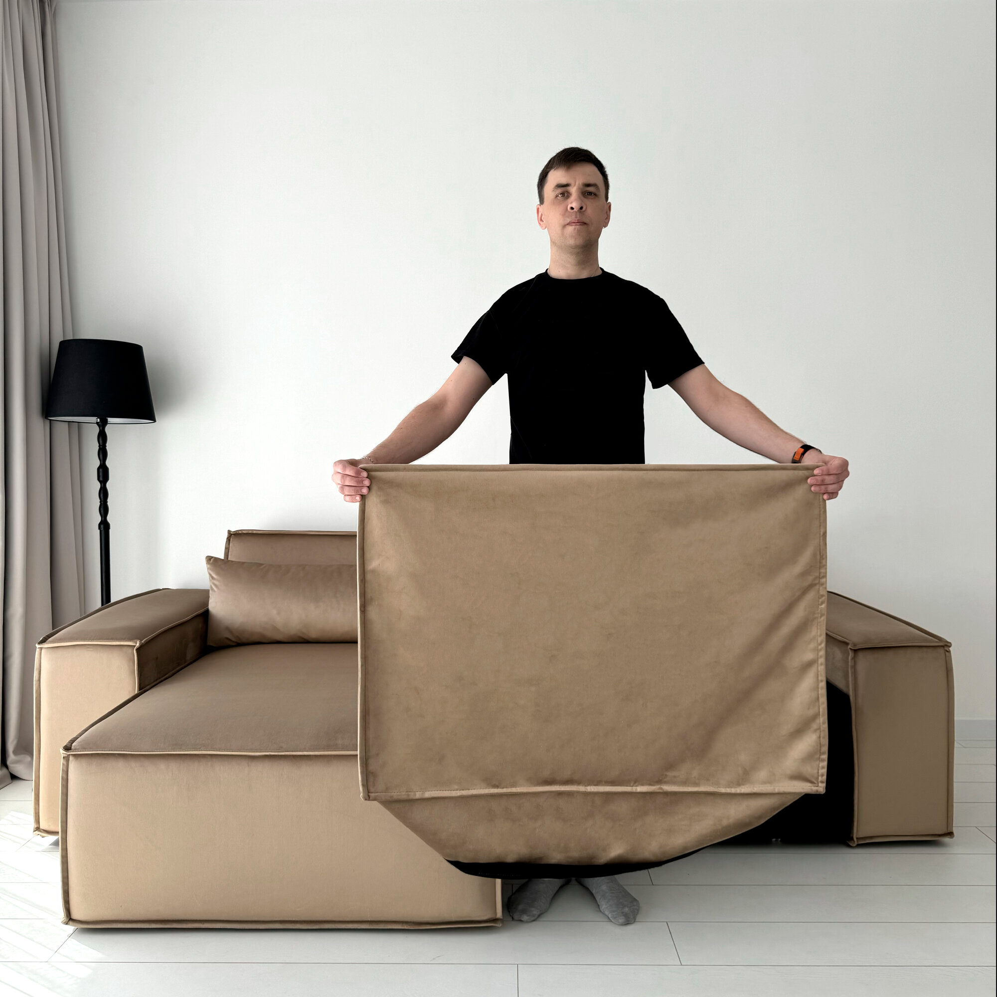 Диван-кровать Redsofa Пикассо 260 см темно-бежевый Teddi. Раскладной угловой диван со съемными чехлами, для дома и офиса.