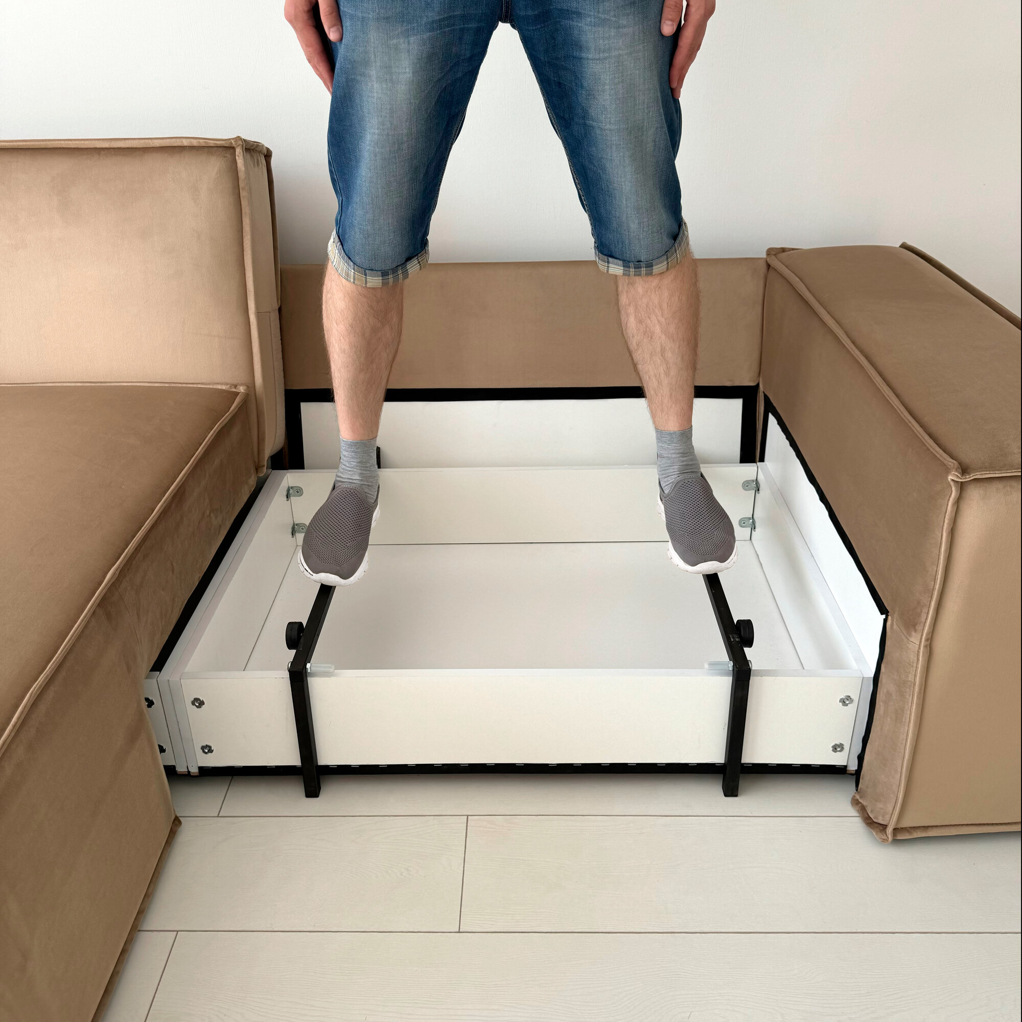 | Особенности | антивандальная обивка, модульный, пружинный блок, раскладная конструкция, с подлокотниками, съемный чехол, ящик для белья |