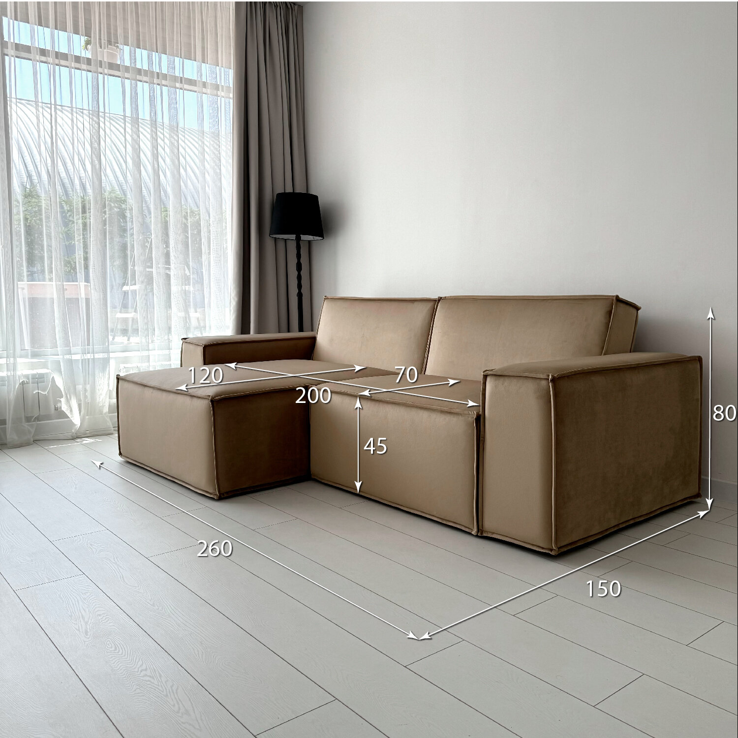 Диван-кровать Redsofa Пикассо 260 см Букле Латте. Раскладной угловой диван со съемными чехлами, для дома и офиса (Мебельный гарнитур бытового назначения)