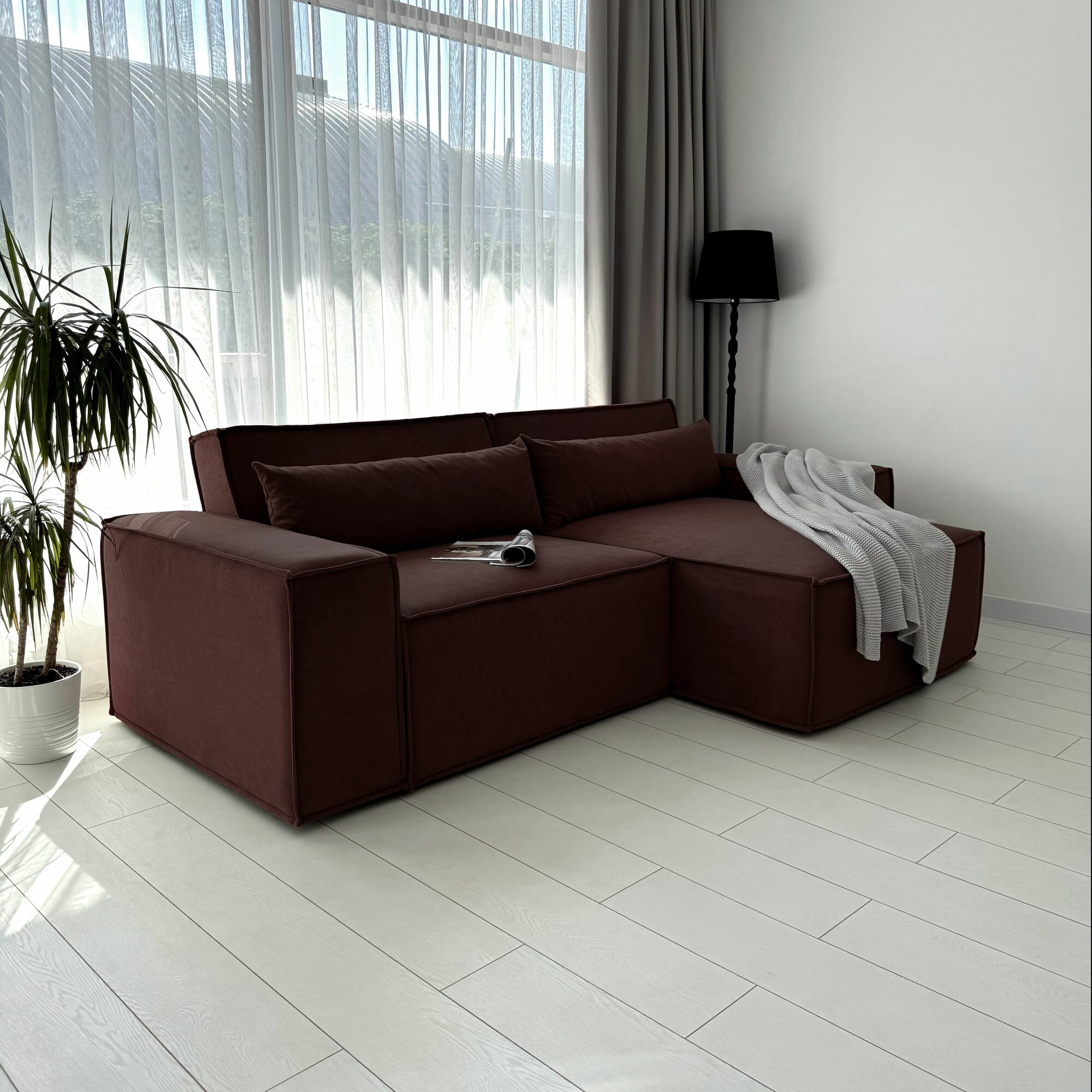 Диван-кровать Redsofa Пикассо 260 см маренго Ocean. Раскладной угловой диван со съемными чехлами, для дома и офиса (Мебельный гарнитур бытового назначения)