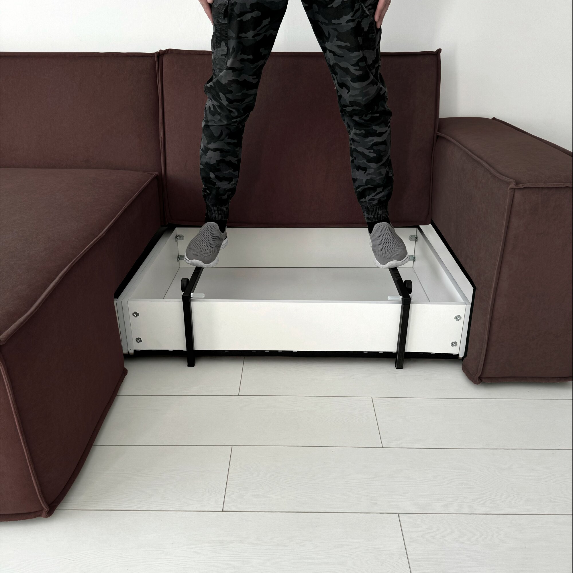 Диван-кровать Redsofa Пикассо 260 см темно-коричневый антивандальный. Раскладной угловой диван со съемными чехлами, для дома и офиса.