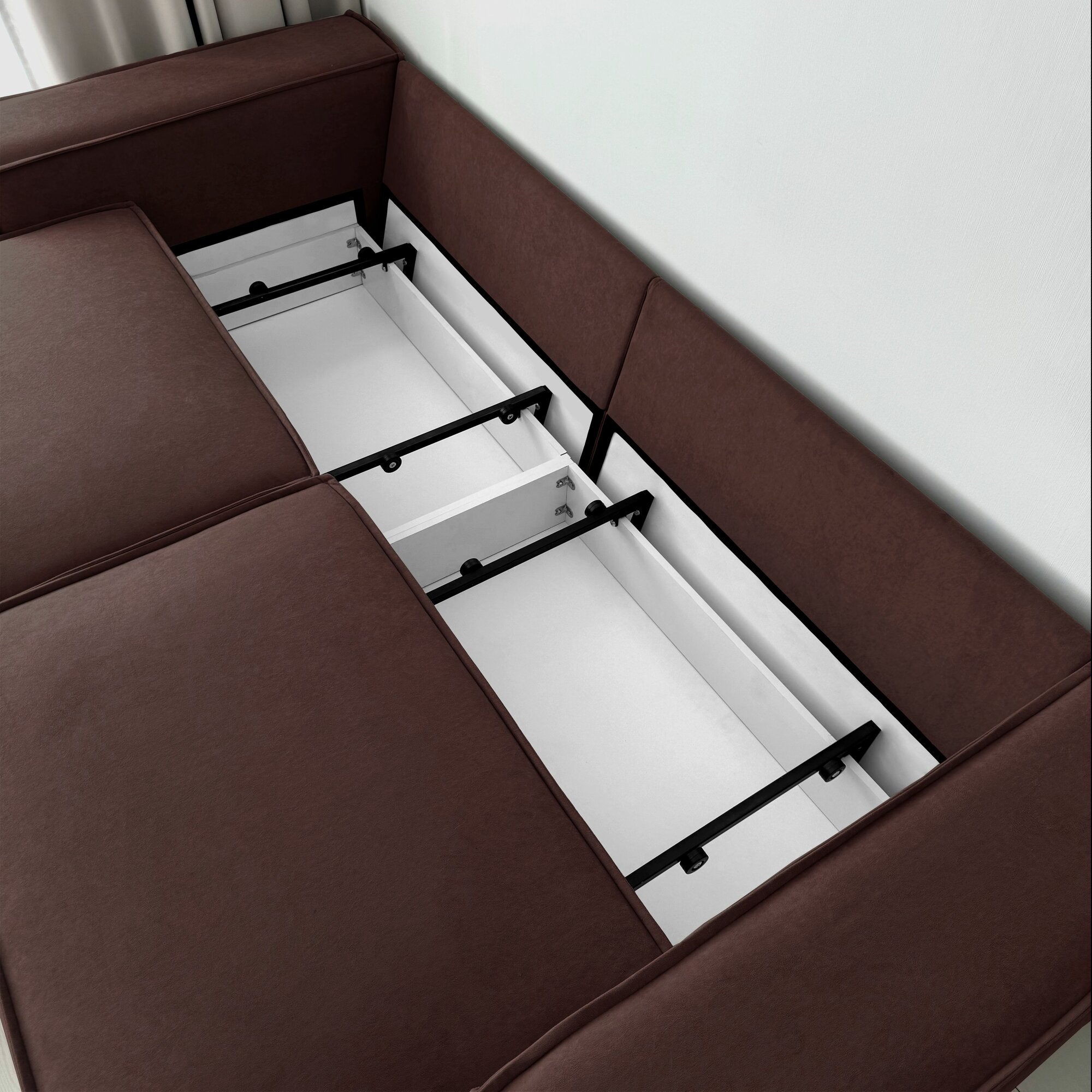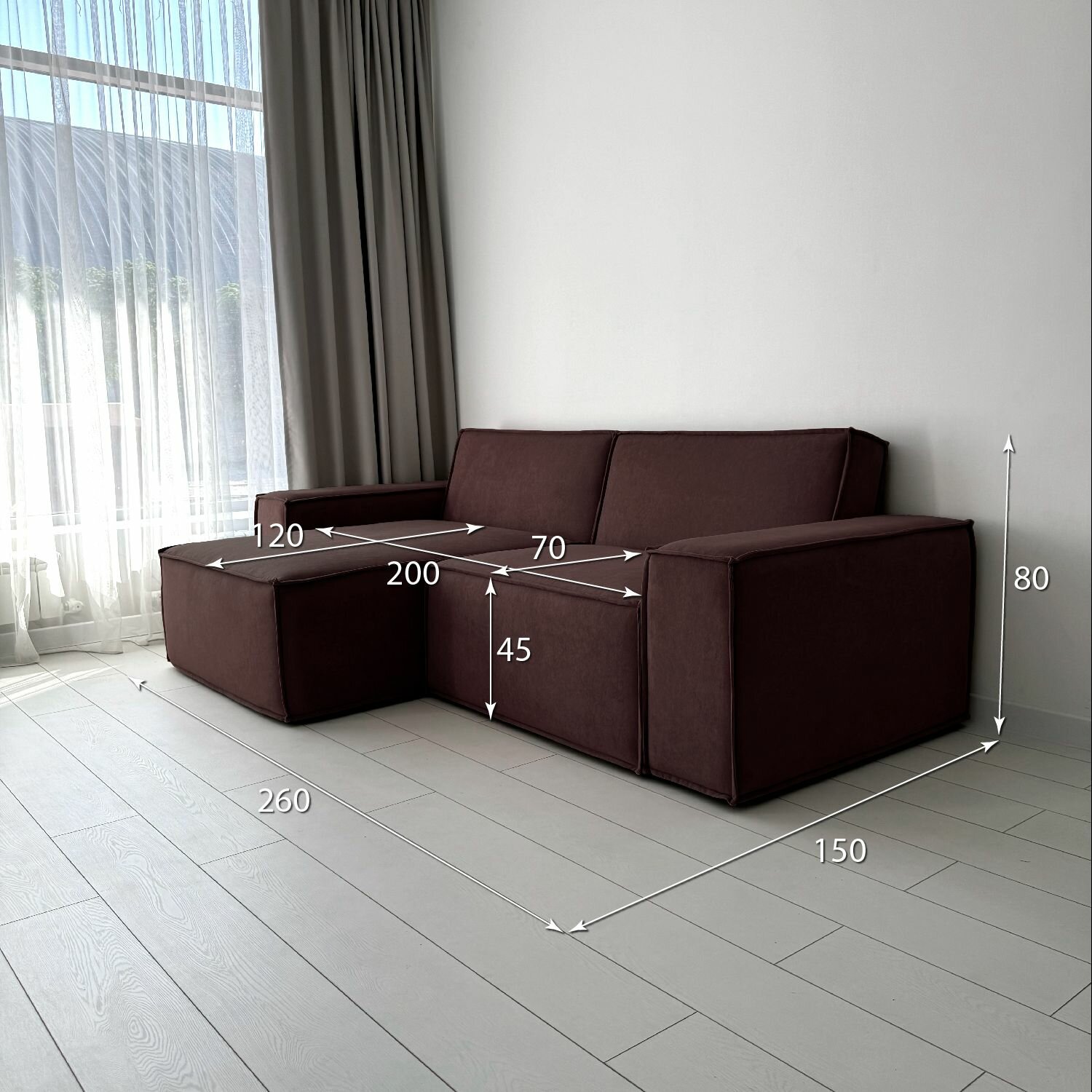 Диван-кровать Redsofa Пикассо 260 см темно-коричневый Teddi. Раскладной угловой диван со съемными чехлами, для дома и офиса (Мебельный гарнитур бытового назначения)