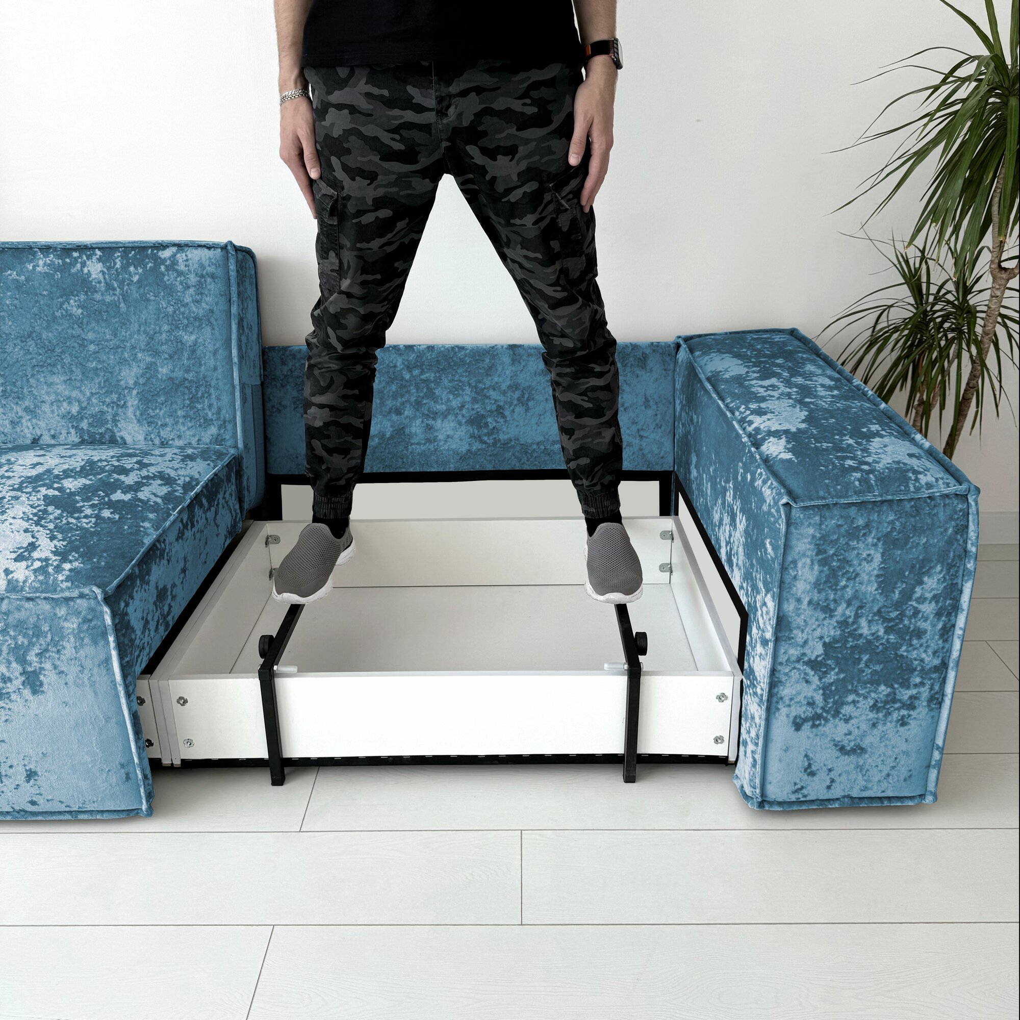 Диван-кровать Redsofa Пикассо 260 см синий Teddi. Раскладной угловой диван со съемными чехлами, для дома и офиса.