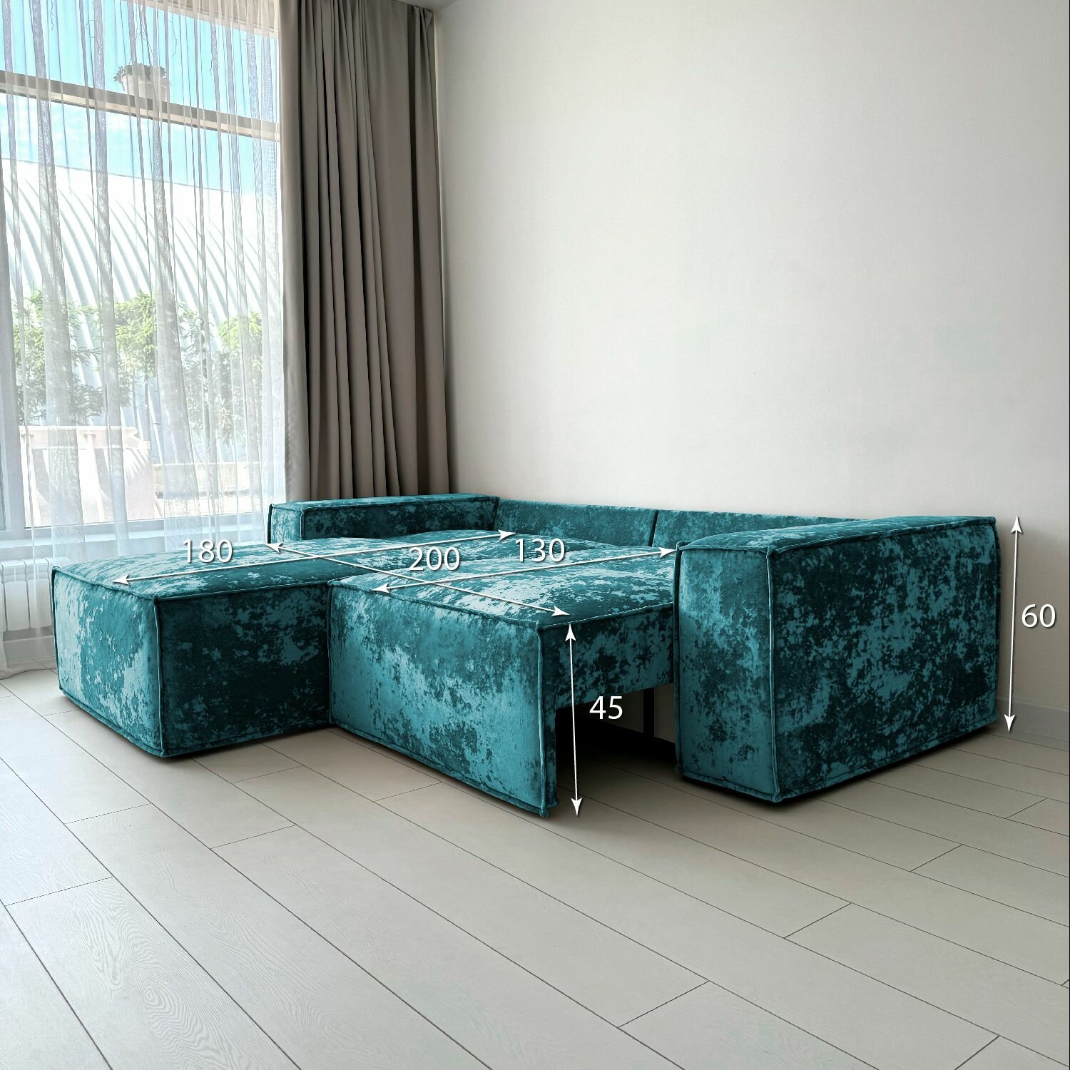 Диван-кровать Redsofa Пикассо 260 см аквамарин Ocean. Раскладной угловой диван со съемными чехлами, для дома и офиса (Мебельный гарнитур бытового назначения)