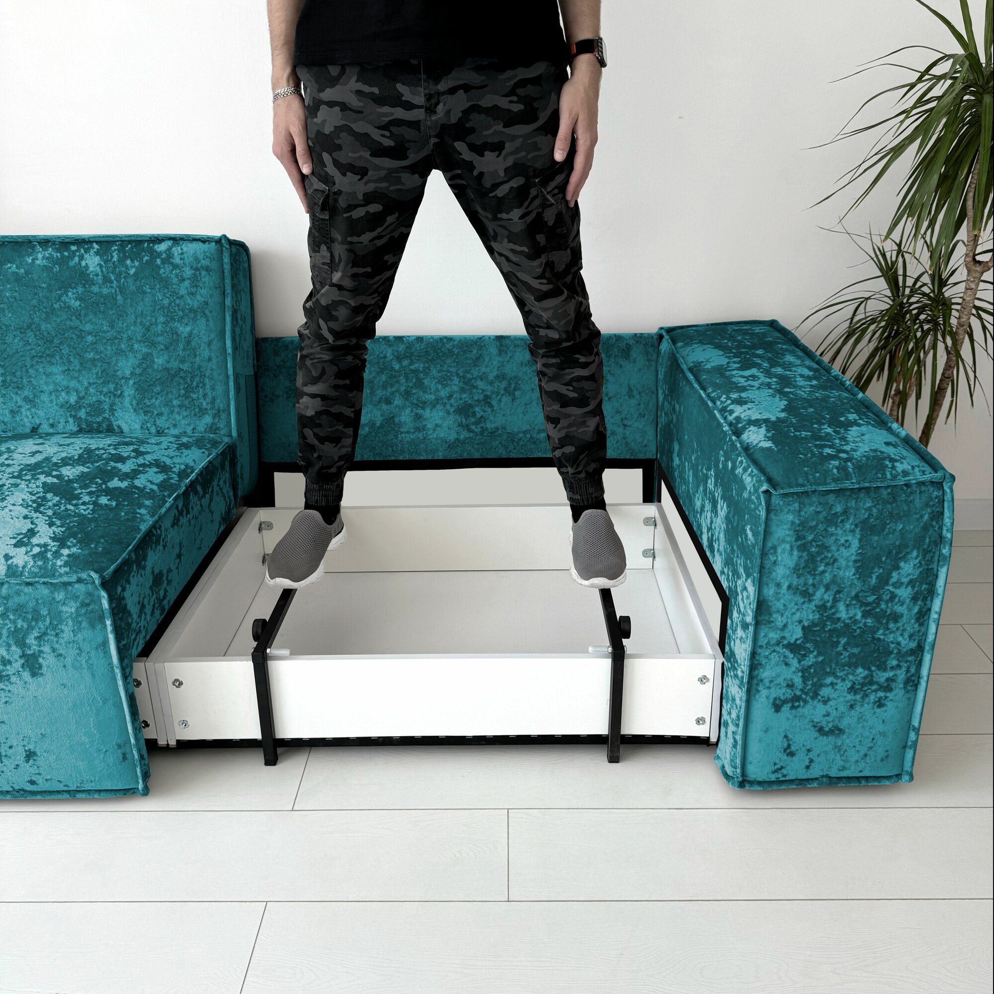 Диван-кровать Redsofa Пикассо 260 см бирюзовый Teddi. Раскладной угловой диван со съемными чехлами, для дома и офиса (Мебельный гарнитур бытового назначения)