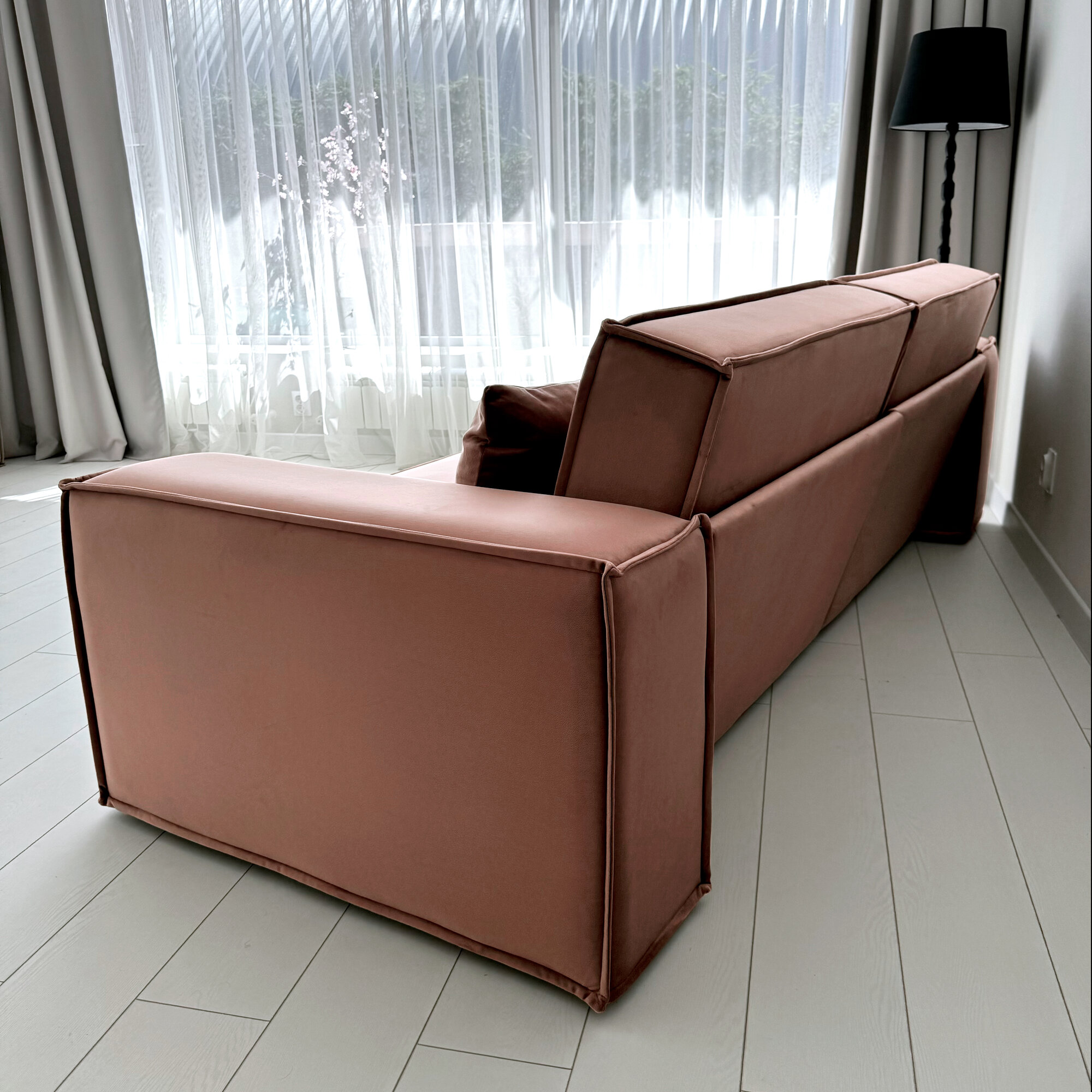 Купить Диван-кровать Redsofa Пикассо 260 см розовый антивандальный. Раскладной угловой диван со съемными чехлами, для дома и офиса.