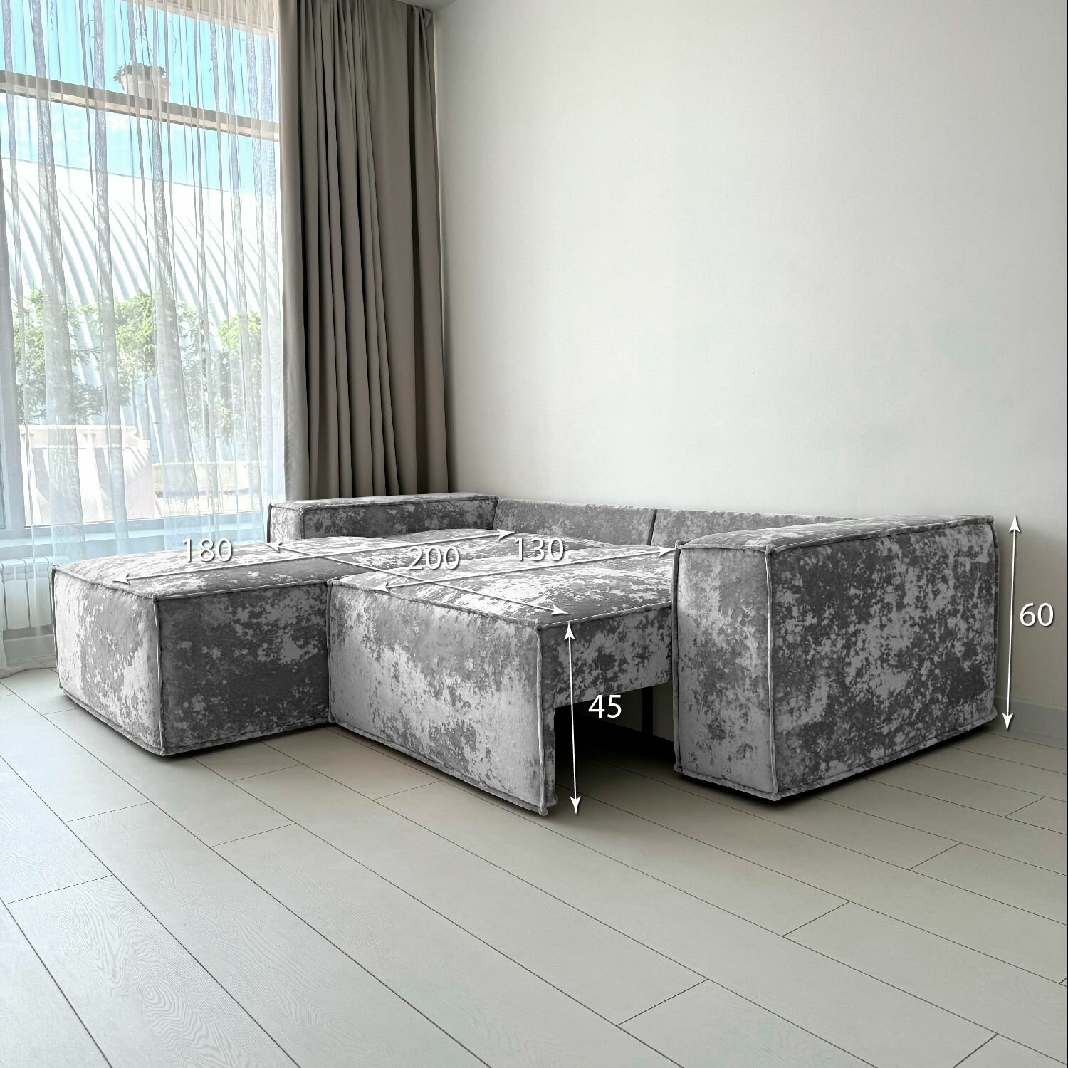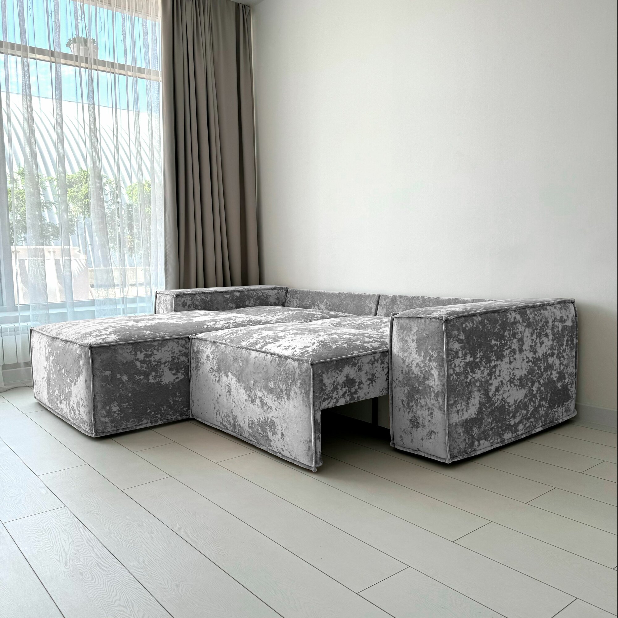 Диван-кровать Redsofa Пикассо 260 см серебристый Ocean. Раскладной угловой диван со съемными чехлами, для дома и офиса.