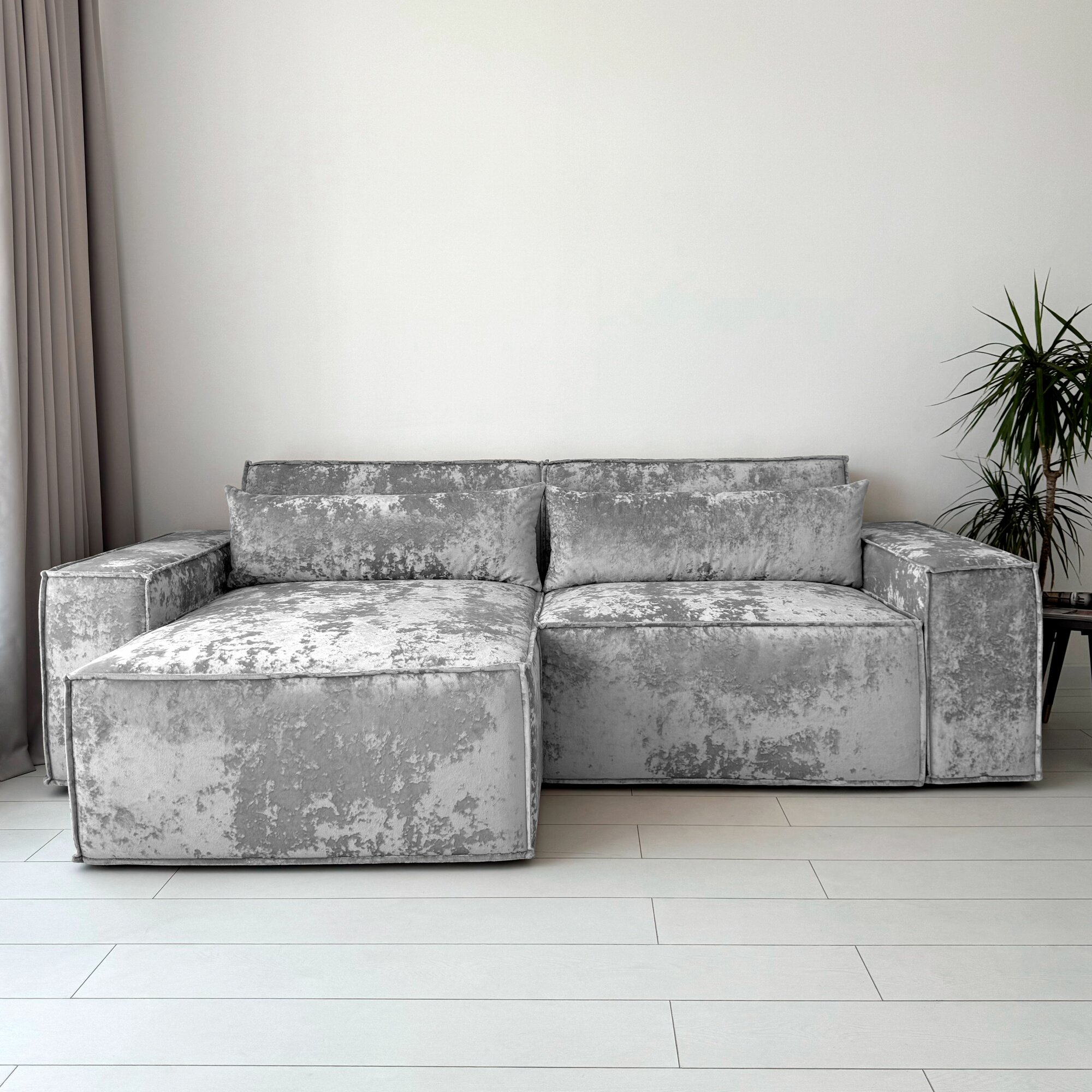 Диван-кровать Redsofa Пикассо 260 см серебристый Ocean. Раскладной угловой диван со съемными чехлами, для дома и офиса (Мебельный гарнитур бытового назначения)