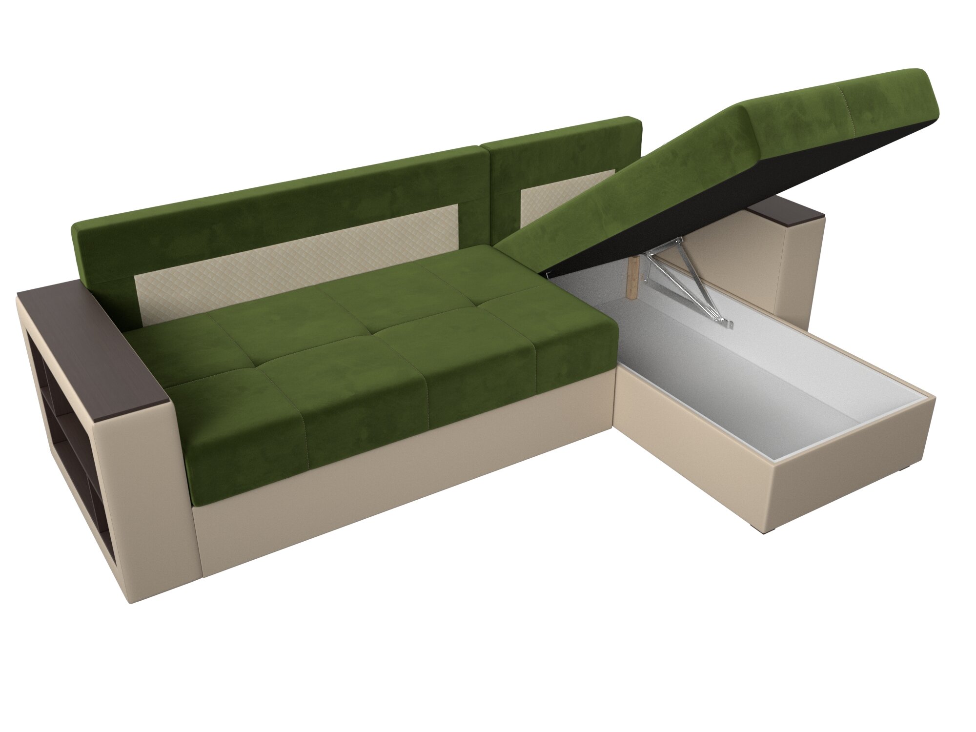 Диван угловой Дубай Лайт левый угол, микровельвет, механизм еврокнижка, зеленый, модель 114177L