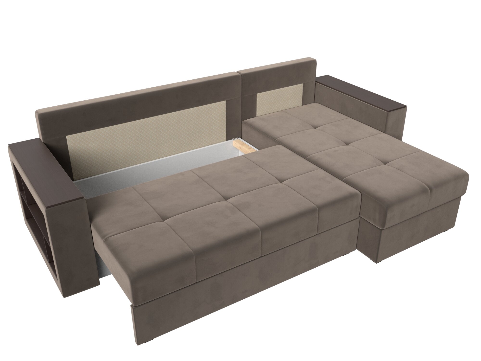 Диван угловой Дубай Лайт левый угол, велюр, механизм еврокнижка, коричневый, модель 114156L