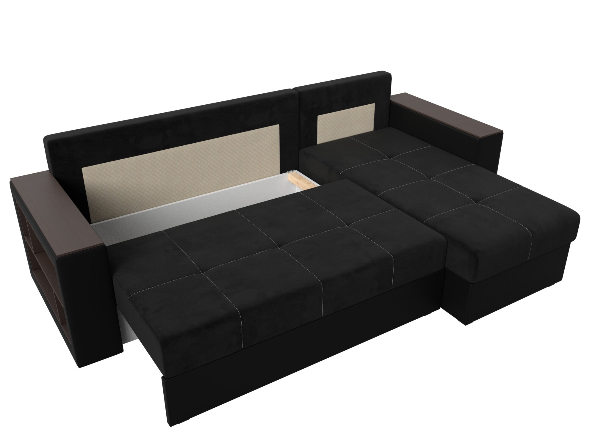 Диван угловой Дубай Лайт левый угол, велюр, механизм еврокнижка, черный, модель 114153L