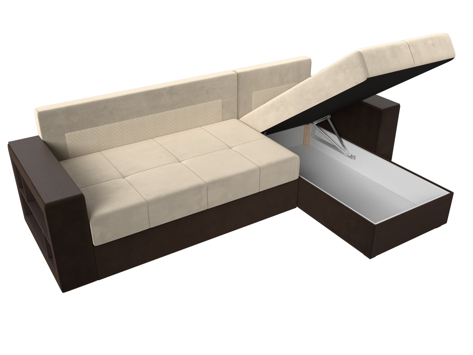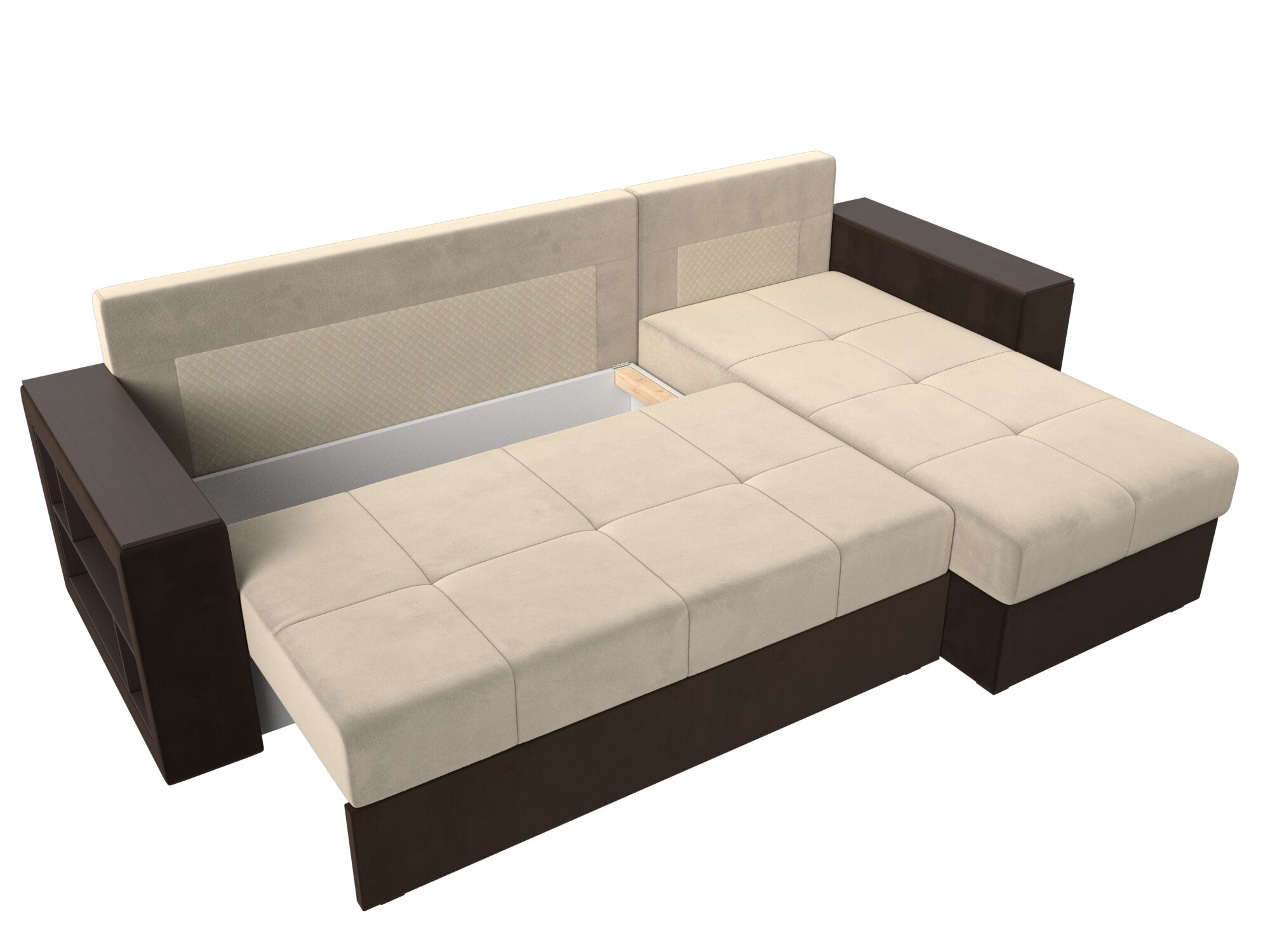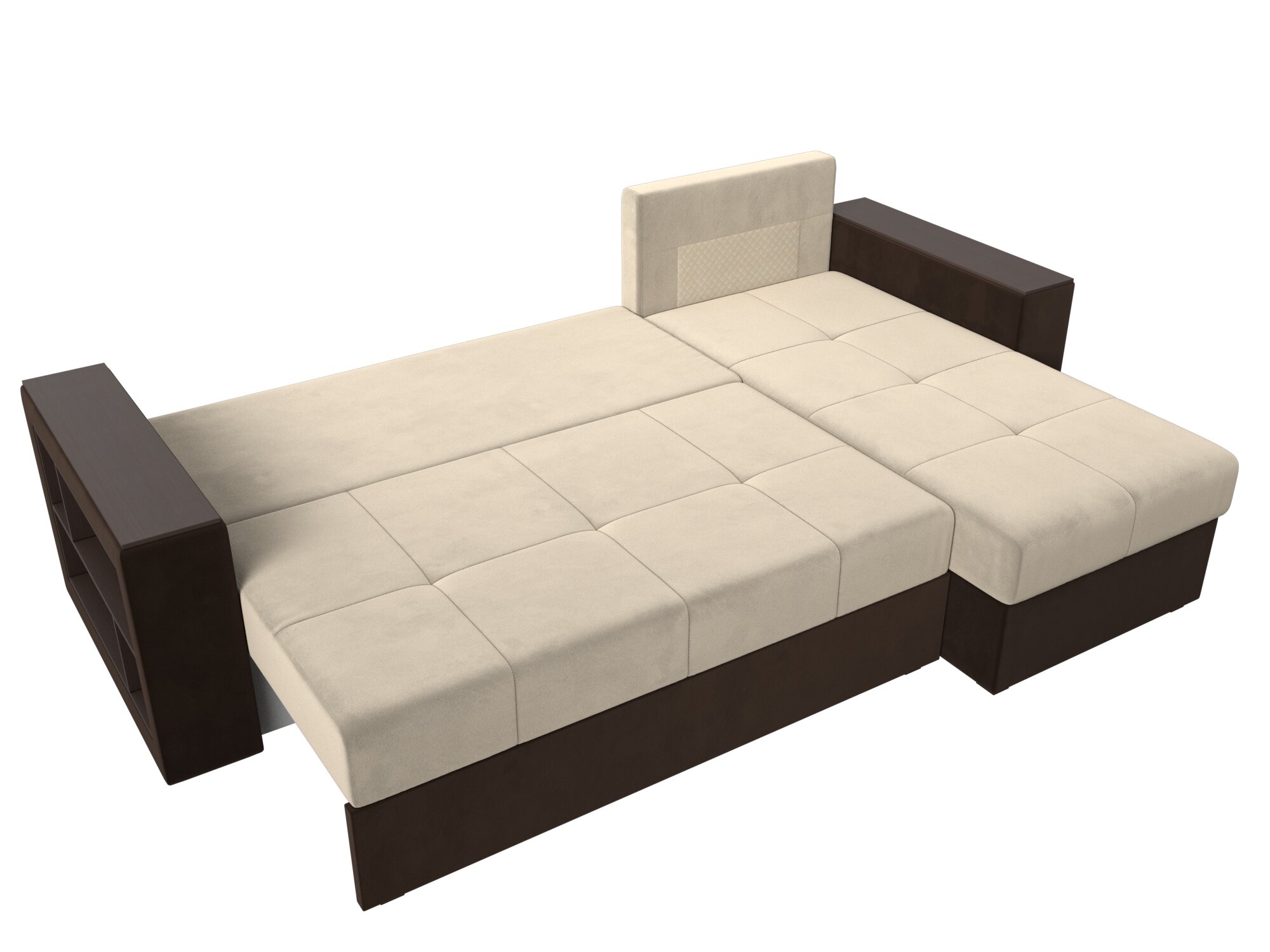 Диван угловой Дубай Лайт правый угол, велюр, механизм еврокнижка, бежевый, модель 114151