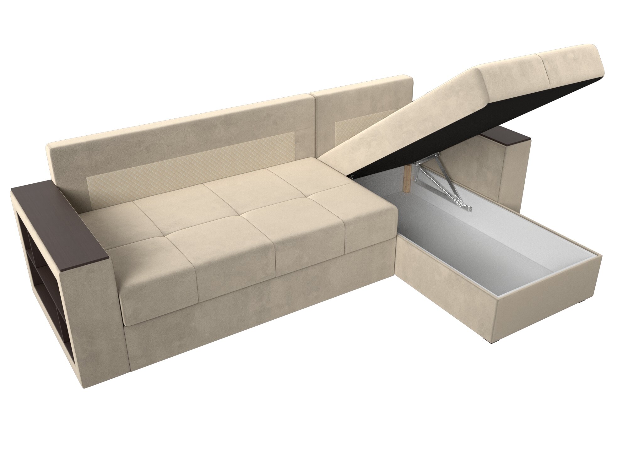 Диван угловой Дубай Лайт правый угол, велюр, механизм еврокнижка, бежевый, модель 114151