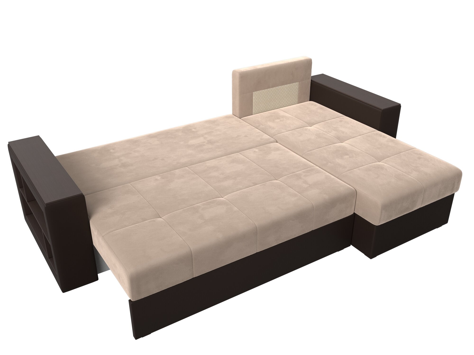 Диван угловой Дубай Лайт правый угол, велюр, механизм еврокнижка, бежевый, модель 114151